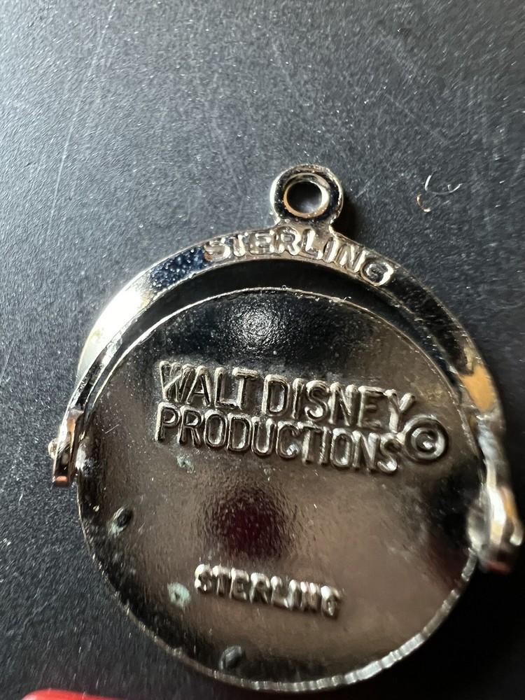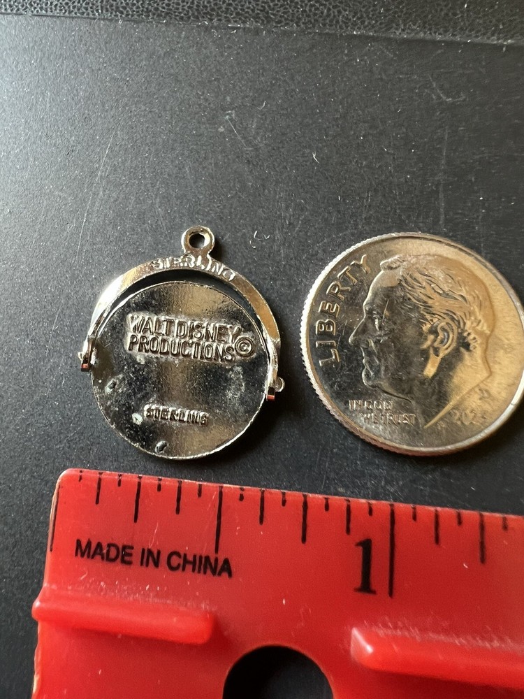 Desirable collectible vintage Sterling and enamel Disney charm , it swings and moved back and forth . Small at a half inch