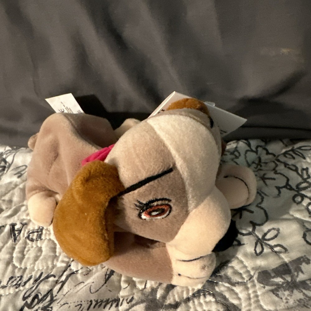 This 8-inch bean bag plush toy features the beloved characters Lady and the Tramp from Walt Disney World. Made in China with high-quality materials, this plush toy is a must-have for any Disney fan. The plush is soft and cuddly, making it perfect for children and adults alike. The design and attention to detail on this plush toy are impressive, capturing the essence of the characters perfectly. Whether you're a collector of Disney memorabilia or simply looking for a fun and unique addition to your home, this Walt Disney World LADY and The Tramp 8" Bean Bag Plush is sure to please. Tags remain on the bean bag.