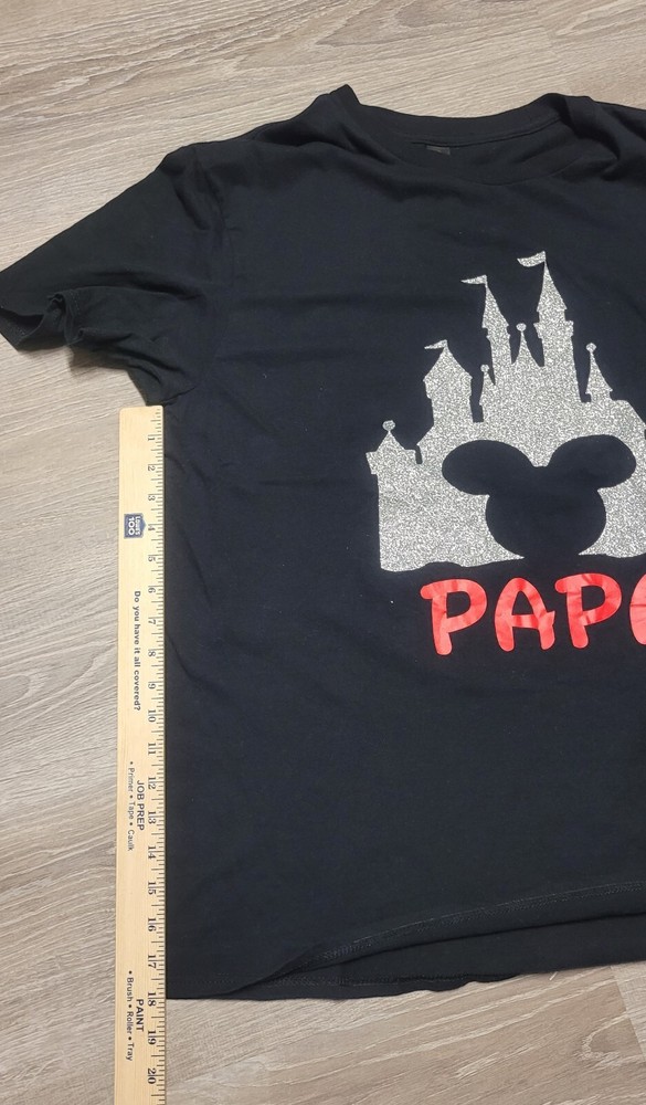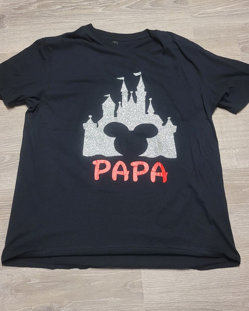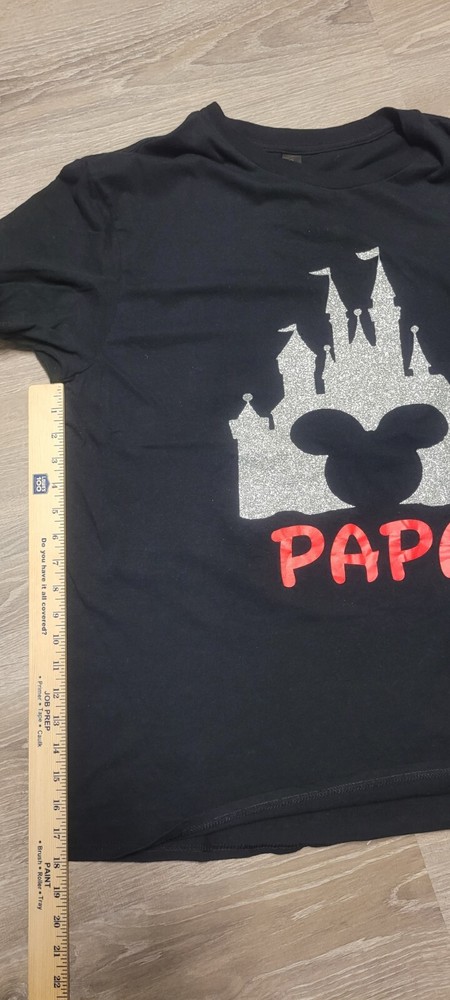 Show off your love for Mickey Mouse with this Disney World PAPA T-Shirt. This comfortable and stylish black tee features the iconic character on the front, along with the word "PAPA" in bold letters. The shirt is suitable for any adult man looking to add some Disney magic to their wardrobe. Made by Anvil and crafted in Haiti, this shirt is perfect for collectors of contemporary Disneyana. The size of this XL tee is sure to fit any fan comfortably. Don't miss out on this opportunity to show off your love for Mickey Mouse and add this T-shirt to your collection! SW1