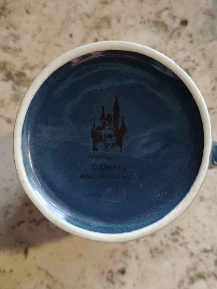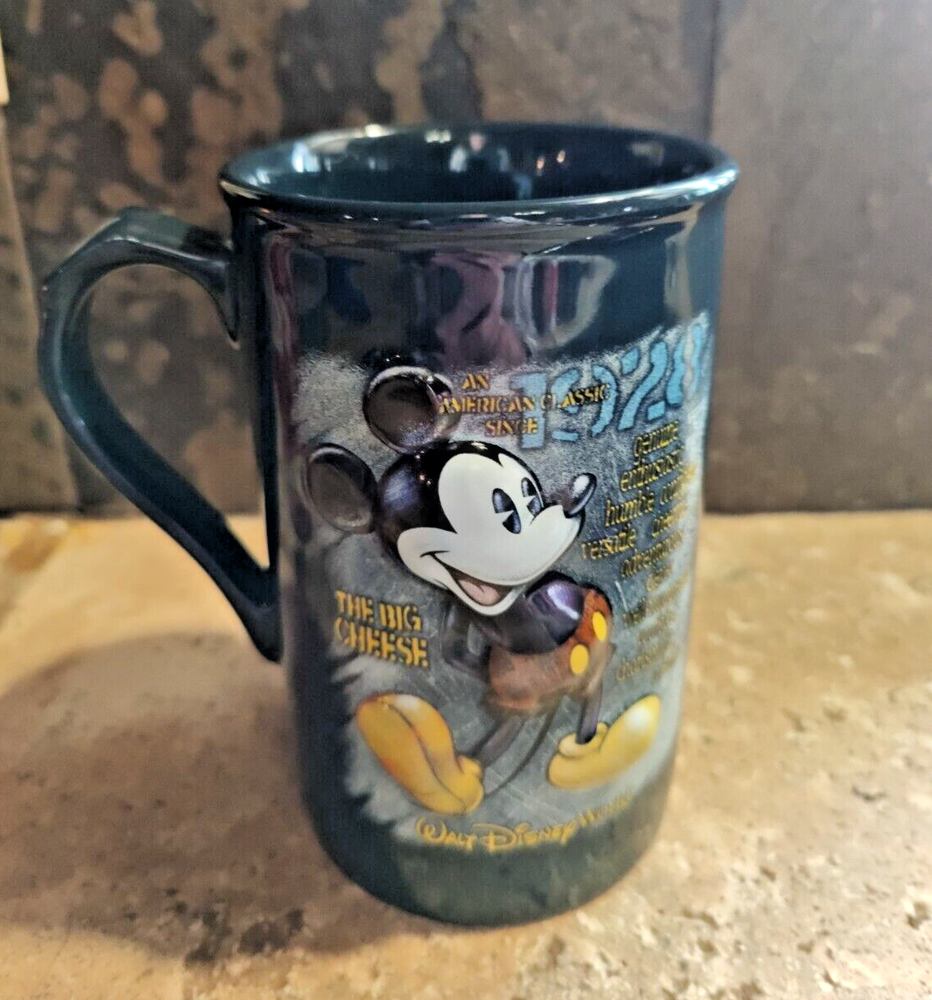 This 16oz. ceramic mug features Mickey Mouse who is raised above the flat mug and is part of the Walt Disney World collection. This is a preowned mug that shows typical wear from age and use. There are no chips or cracks.