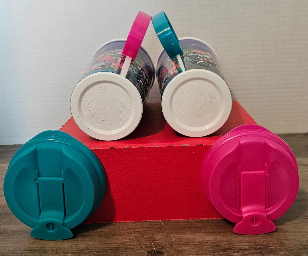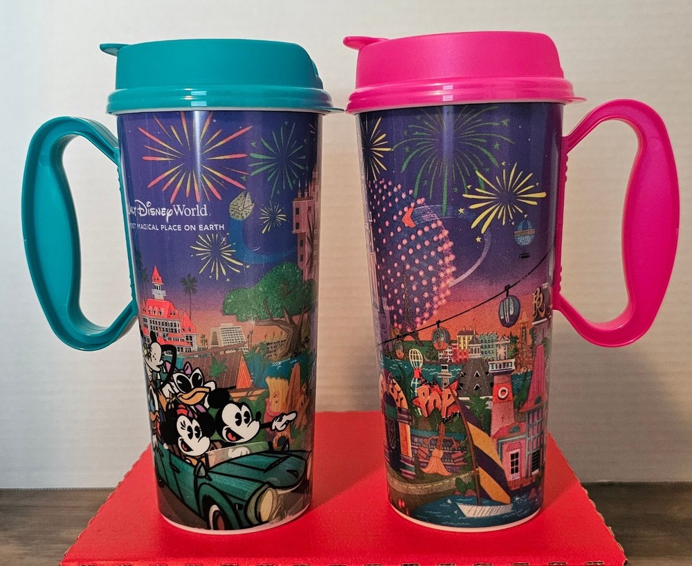 Disney World 2024 Whirley 16oz Refillable Drink Mugs in Orange Pink Green