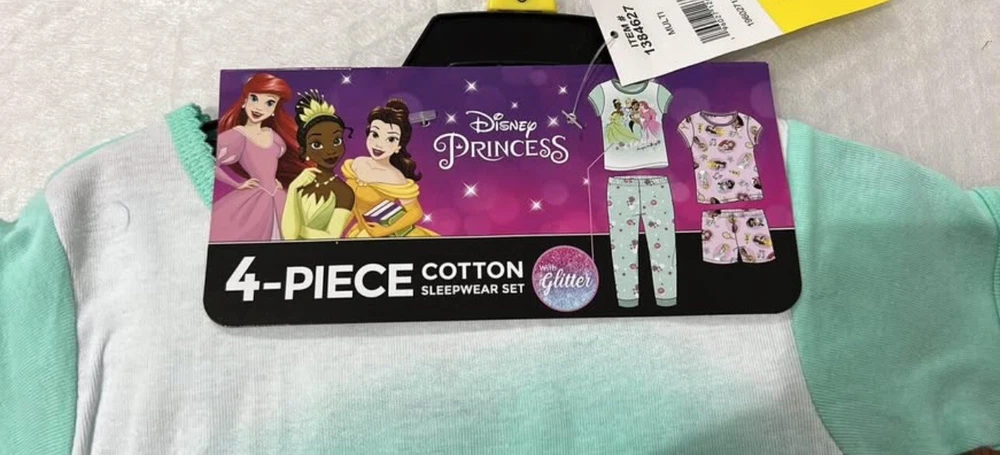 Make your little girl feel like a Disney princess while she sleeps in style with this charming 4-piece sleepwear set. The set includes a short-sleeve top, comfortable shorts, and two coordinating accessories, all featuring her favorite characters Belle and Cinderella. The blended fabric is soft and breathable, ensuring a cozy and comfortable night's sleep. The set comes in size 5 and is perfect for girls who love the magic of Disney and dressing up in their favorite characters.