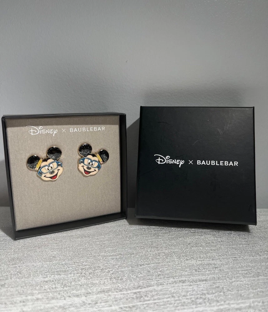 Brand new with box The perfect gift for your favorite teacher! These Disney x BaubleBar Mickey Mouse earrings feature Mickey wearing blue glasses and a charming pencil detail, adding a playful, academic touch. A thoughtful and unique teacher appreciation gift, brand new in their original gift box. Shipped with care from a smoke-free, pet-free home. Ships next business day!