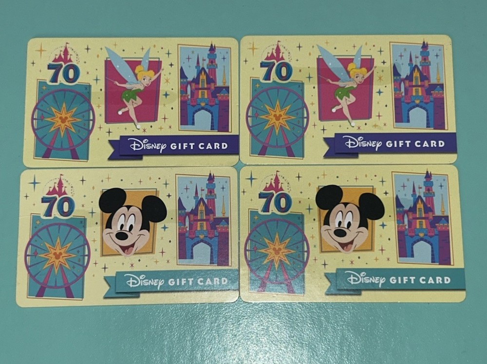 Disneyland 70th Anniversary Collectible Gift Cards x4 Zero Balance Disney Parks