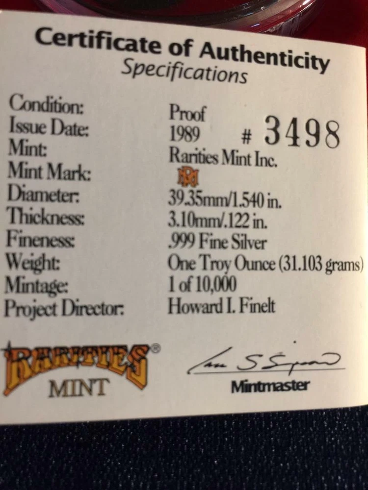 Truly rare collectible limited one troy ounce large heavy coin available for management show production imagineers. Original Case, Authenticity card in enclosed. Never being used or displayed.