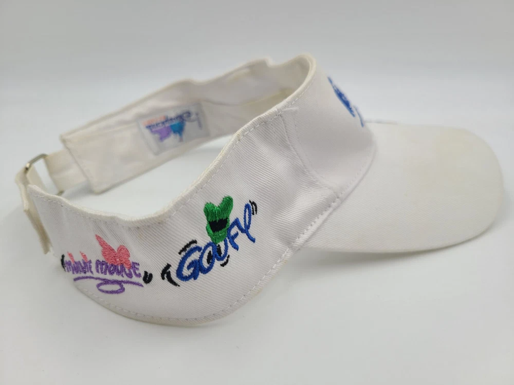 Has some stains/discoloration on the brim, side, and underneath the brim as seen in photos. Youth Mickey Mouse Pluto Donald Minnie Goofy Disneyland Visor Adjustable Hat Cap. EACH ADDITIONAL HAT PURCHASED IS ONLY $1 ADDED SHIPPING!
