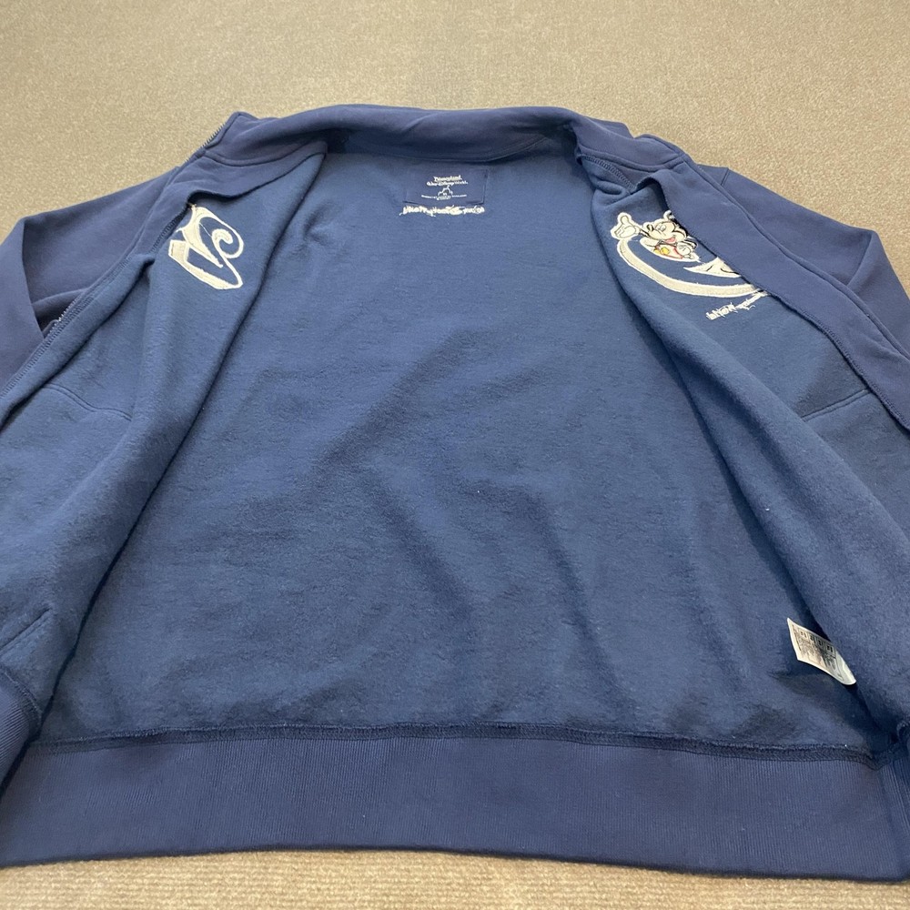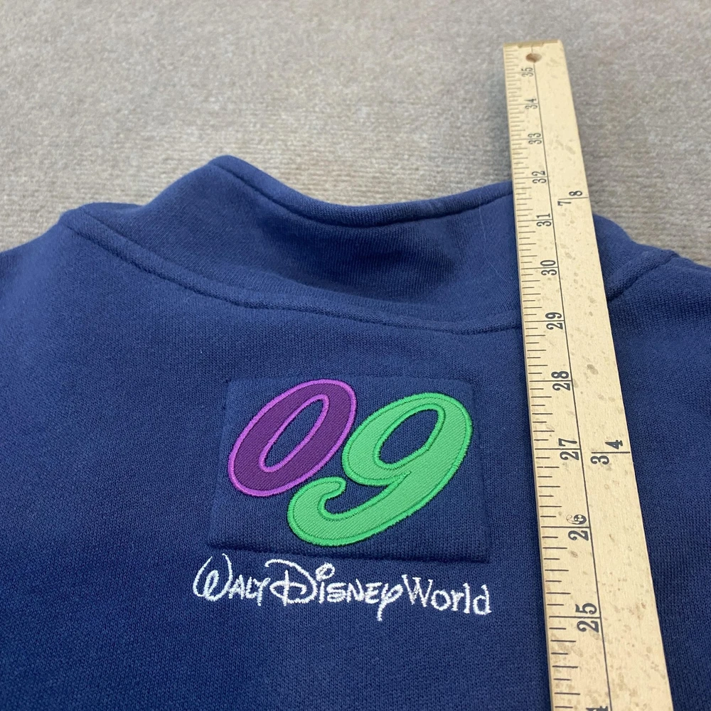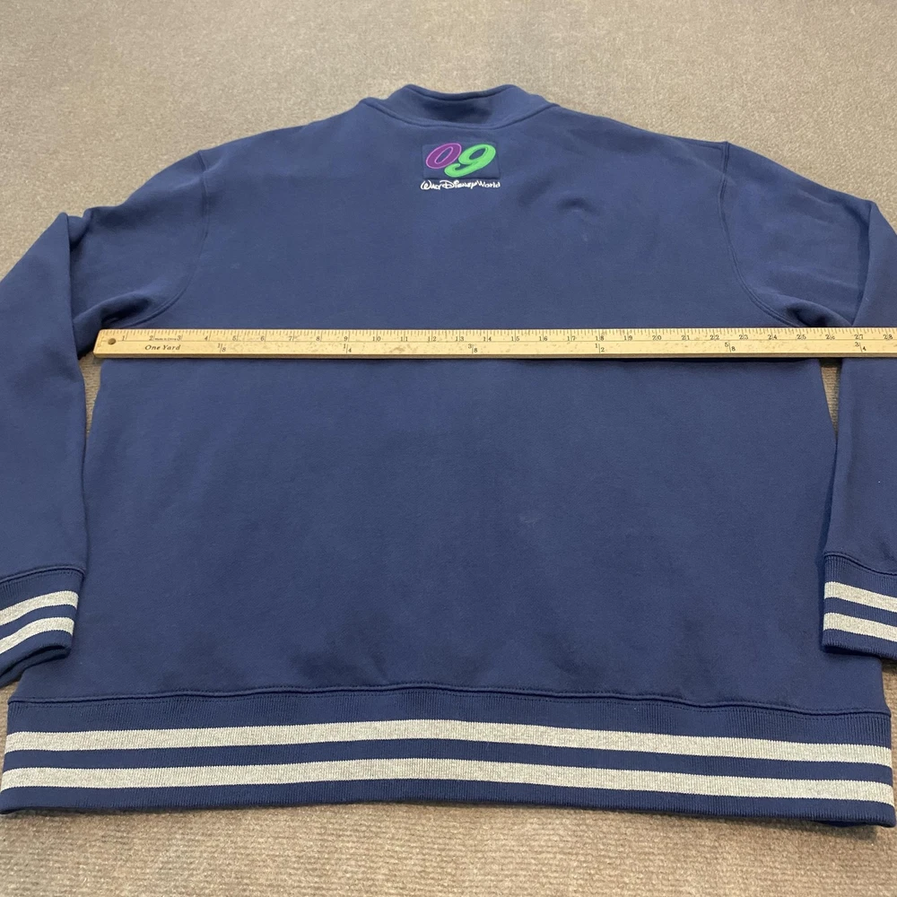 Disneyland Walt Disney World Jacket Mens XL Blue 2009 Mickey Mouse Full Zip Sweater Condition: Gently worn, no visible flaws, excellent preowned condition Features full zip front, side pockets, and vibrant 2009 Mickey Mouse graphic on front and upper back Material: 80% cotton, 20% polyester (exclusive of decoration), made in Thailand Color: Blue with gray striped ribbed cuffs and hem Official Disneyland and Walt Disney World tag inside, size XL Classic Disney park souvenir jacket—great collectible or everyday casual wear