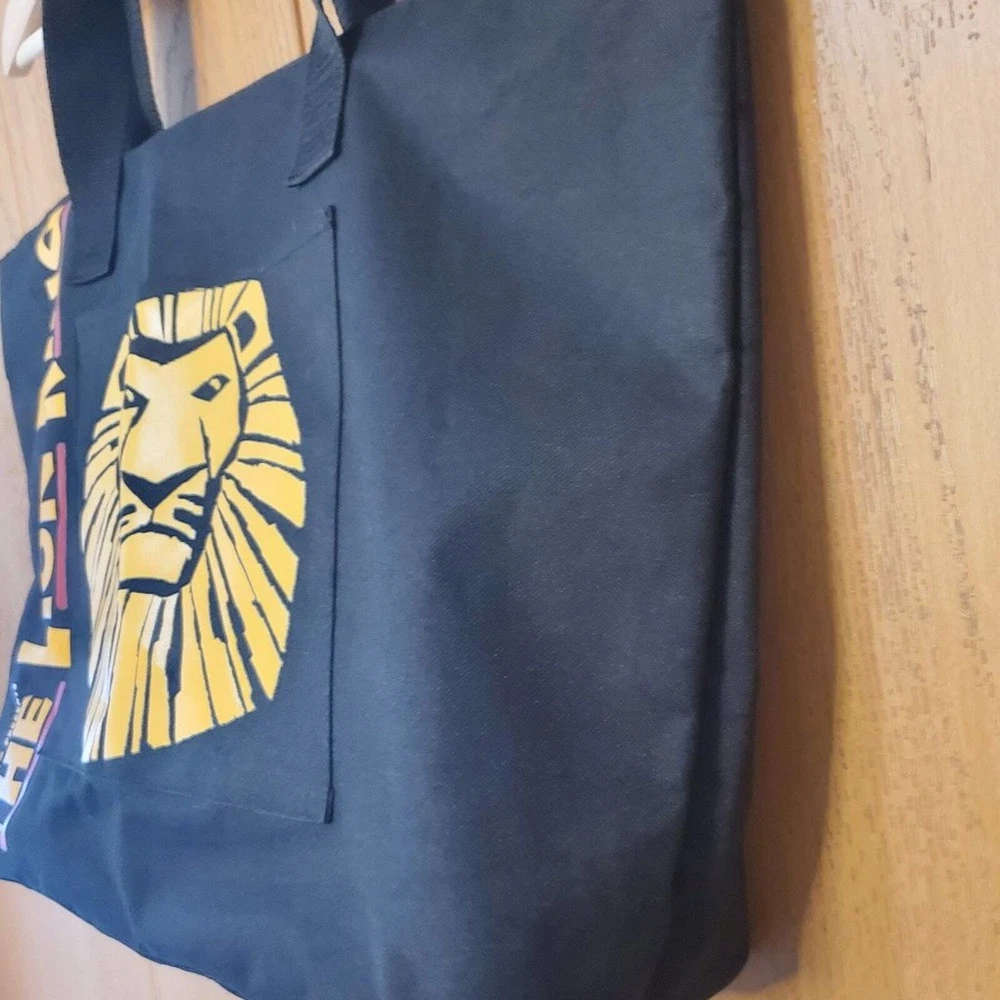 Immerse yourself in the grandeur of Disney's The Lion King with this Black Broadway Musical Zip Tote Bag. Crafted from durable canvas, this tote bag is both stylish and functional, providing ample space for all your essentials. Designed with a spacious interior, this tote bag is perfect for carrying your belongings with ease. Whether you're heading to work, school, or a day out, this bag can accommodate your needs. The sturdy strap ensures comfortable and secure carrying, while the decent-sized front pocket offers convenient access to smaller items. With the iconic Lion King Broadway Musical design, this tote bag pays homage to the timeless tale and its extraordinary legacy. The black color adds a touch of elegance and versatility, making it a perfect accessory for any occasion. Carry the spirit of The Lion King wherever you go, and let this zip tote bag become a treasured reminder of the powerful story and music that touched your heart. Embrace the roomy practicality and sturdy construction of this Broadway Musical Zip Tote Bag and showcase your love for the majestic world of Disney's The Lion King today! Size: Measurements are approximate Condition: Well worn. With the zipper pull frayed Have a magical day Pet-free, smoke-free home.