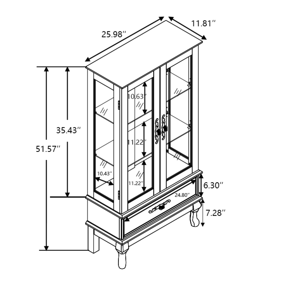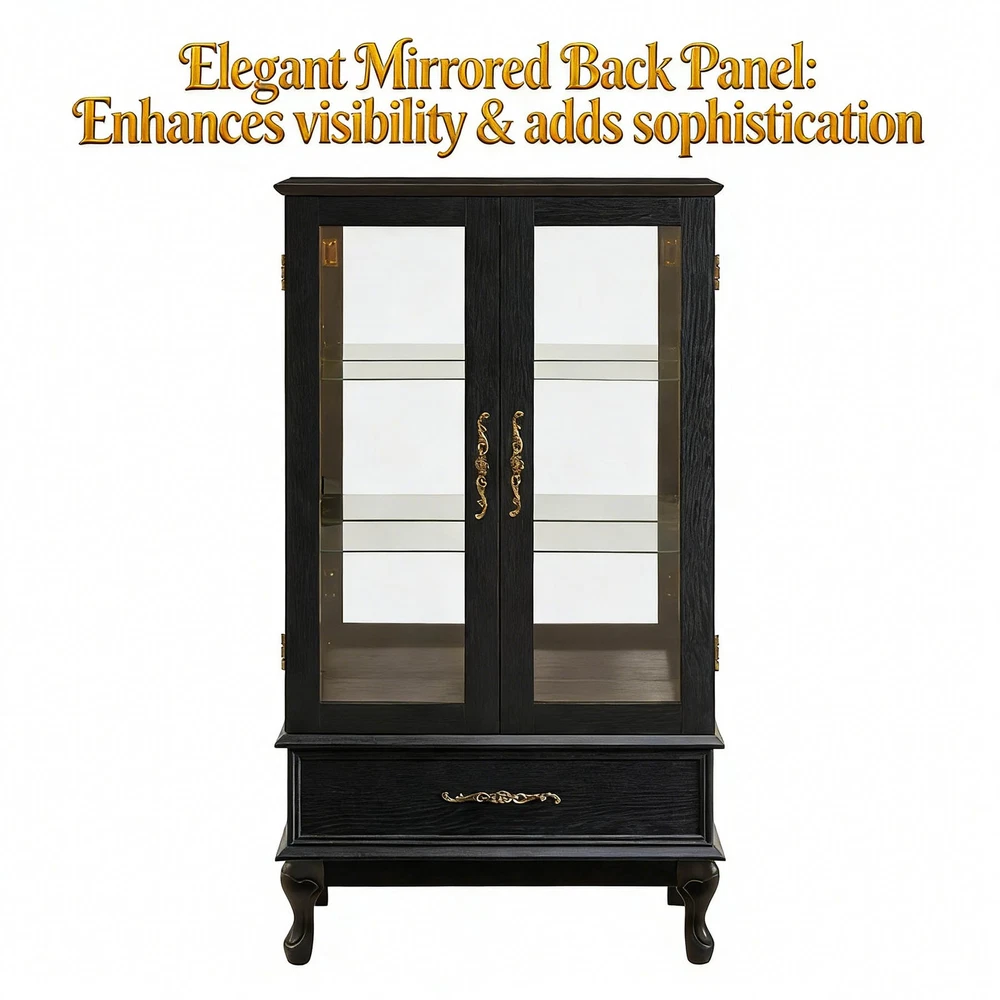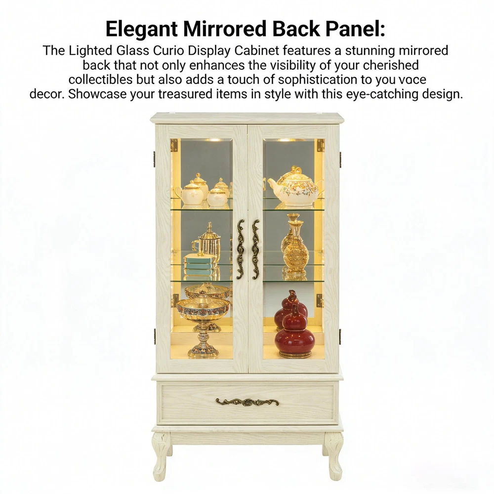 Curio Cabinet eBay Product Descriptions 1. Lighted Curio Cabinet - Dark Cherry Finish Product Name: Curio Cabinet Lighted Glass Cabinet Glass Wine Cabinet Curio Display Cabinet with Adjustable Glass Shelves 2 Doors and 1 drawer Cabinet Sideboard With Bulb Included Dark Cherry Key Features & Highlights: Elegant & Sophisticated Aesthetic: Adds a touch of luxury to any living room, dining room, or entryway, seamlessly blending with various home decor styles. Illuminated Display System: Included bulb lights up your collectibles, wines, or treasures, creating a captivating visual focal point. Ample & Versatile Storage: Features 2 glass doors, 3 partitions, and a spacious drawer, providing abundant space for display and organized storage. Adjustable Glass Shelves: Customize the interior layout according to the size and height of your items, maximizing storage flexibility. Premium Material: Crafted from high-quality MDF and glass, ensuring durability and long-lasting use. Specifications: Color: Dark Cherry Material: MDF + Glass Assembled Dimensions: 25.98"W x 11.81"D x 51.58"H (inches) Product Weight: 69.30 lbs Package Dimensions: 40.16"L x 15.95"W x 13.00"H (inches) Package Weight: 78.10 lbs Assembly Note: Before assembling the backplane, please tear off the film on the backplane first. Warranty & Return Policy: 1-Year Quality Warranty | 30-Day Free Return & Exchange (No-Hassle, Full Refund if Unsatisfied) Transform your home decor and showcase your precious items in style with this elegant lighted curio cabinet. Perfect for displaying collectibles, wines, figurines, and more! 2. Lighted Curio Cabinet - Light Oak Finish Product Name: Curio Cabinet Lighted Glass Cabinet Glass Wine Cabinet Curio Display Cabinet with Adjustable Glass Shelves 2 Doors and 1 drawer Cabinet Sideboard With Bulb Included Light oak Key Features & Highlights: Elegant & Sophisticated Design: Brings a warm, luxurious touch to any space, complementing both traditional and modern home decors. Illuminated Display: Built-in lighting system (bulb included) highlights your displayed items, creating a stunning visual effect that draws attention. Multiple Storage Options: Equipped with 2 glass doors, 3 partitions, and a large drawer, offering ample space for display and storage needs. Adjustable Shelves: Movable glass shelves allow you to tailor the storage space to fit items of different sizes and heights, enhancing usability. Durable Construction: Made of high-grade MDF and glass, ensuring sturdiness and long-term reliability. Specifications: Color: Light Oak Material: MDF + Glass Assembled Dimensions: 25.98"W x 11.81"D x 51.58"H (inches) Product Weight: 69.30 lbs Package Dimensions: 40.16"L x 15.95"W x 13.00"H (inches) Package Weight: 78.10 lbs Assembly Note: Before assembling the backplane, please tear off the film on the backplane first. Warranty & Return Policy: 1-Year Quality Warranty | 30-Day Free Return & Exchange (No-Hassle, Full Refund if Unsatisfied) Elevate your home display with this stylish light oak curio cabinet. Ideal for showcasing wines, collectibles, family heirlooms, and other precious items! 3. Lighted Curio Cabinet - Antique White Finish Product Name: Curio Cabinet Lighted Glass Cabinet Glass Wine Cabinet Curio Display Cabinet with Adjustable Glass Shelves 2 Doors and 1 drawer Cabinet Sideboard With Bulb Included Antique White Key Features & Highlights: Elegant & Timeless Style: Antique white finish adds a touch of sophistication and charm to any home, perfect for vintage or shabby-chic decor themes. Illuminated Showcase: Included bulb lights up your displayed items, making them stand out and creating a cozy, inviting atmosphere. Spacious Storage: 2 glass doors, 3 partitions, and a roomy drawer provide versatile storage space for collectibles, wines, and more. Customizable Shelves: Adjustable glass shelves let you modify the interior to fit items of various sizes, ensuring maximum storage efficiency. Sturdy Build: Constructed from high-quality MDF and glass, guaranteeing durability and long-term use. Specifications: Color: Antique White Material: MDF + Glass Assembled Dimensions: 25.98"W x 11.81"D x 51.58"H (inches) Product Weight: 69.30 lbs Package Dimensions: 40.16"L x 15.95"W x 13.00"H (inches) Package Weight: 78.10 lbs Assembly Note: Before assembling the backplane, please tear off the film on the backplane first. Warranty & Return Policy: 1-Year Quality Warranty | 30-Day Free Return & Exchange (No-Hassle, Full Refund if Unsatisfied) Add a touch of vintage elegance to your home with this antique white lighted curio cabinet. Perfect for displaying your most cherished items in style! 4. Lighted Curio Cabinet - Light Black Finish (With LED Lights) Product Name: Lighted Curio Cabinet with Glass Doors and Adjustable Shelves 2 Door Wine Cabinet Display Curio Cabinet with LED Lights Light Black Finish and Drawer for Home Decor and Storage Key Features & Highlights: Sleek Elegant Design: Light black finish with beautifully curved table legs and stylish metal drawer handles enhances the aesthetic of any room, offering a modern and sophisticated display solution. LED Illuminated Display: Built-in LED lights (energy-efficient and long-lasting) highlight your collectibles, wines, or treasures, creating a striking visual effect. Ample Multifunctional Storage: Features 3 shelves (1 fixed wooden shelf + 2 adjustable tempered glass shelves) and a generous drawer, providing abundant storage space. Each glass shelf can hold 15-22 lbs. Elegant Mirrored Back Panel: Enhances the visibility of your cherished items and adds an extra touch of sophistication to your home decor, making your display more eye-catching. Easy Installation: Hassle-free assembly with clear, straightforward instructions. Perfect size for various spaces without overwhelming your decor. Durable Material: Crafted from high-quality MDF and glass, ensuring sturdiness and durability for long-term use. Specifications: Origin: China Color: Light Black Material