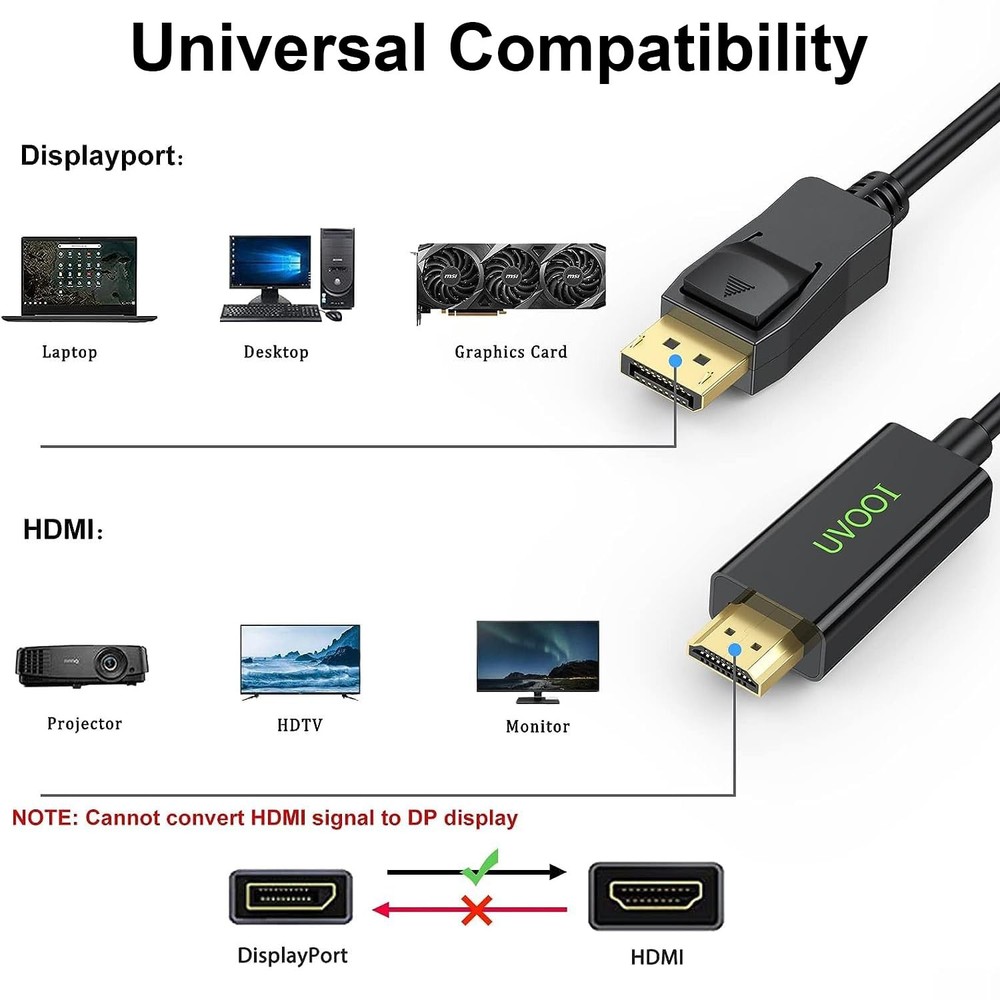 $ 12.04K DisplayPort to HDMI Cable 3FT Uni-Directional Video Adapter Cord