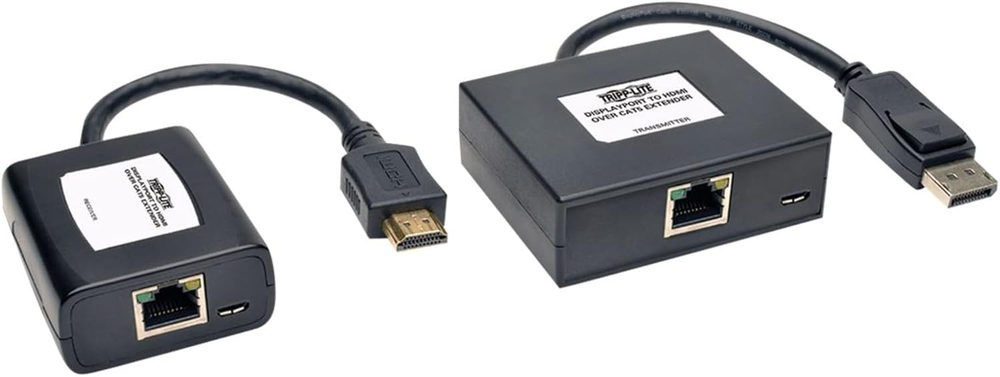 Store New Arrivals Add to Favorite View Feedback Contact Displayport to HDMI over Cat5/6 Active Extender Kit, Pigtail-Style Transmitter & Receiver, Video/Audio, 1080/60P, up to 150Ft. (B150-1A1-Hdmi),Black Description Item model number B150-1A1-HDMI Style DisplayPort to HDMI Product Dimensions 1.7 x 7.9 x 5.6 inches Item Dimensions LxWxH 1.7 x 7.9 x 5.6 inches Color Black Series B1501A1HDMI Color Black Item dimensions L x W x H 1.7 x 7.9 x 5.6 inches Compatible Devices Projector, Monitor, PC, Television Item Weight 7.8 ounces Connector Type 19 pin HDMI Type A Is Discontinued By Manufacturer No Specific Uses For Product TV Country of Origin Taiwan Transmitter and receiver work in tandem to convert a DisplayPort signal to HDMI and extend it over a single Cat5e/6/6a cable to a projector, monitor or television Extends 1080i signal up to 150 ft., 1080p signal up to 125 ft. Supports 24-bit True Color (8 bits per channel) and stereo audio; HDCP 1.3 compliant Included USB Micro-B cables supply power to both units From the manufacturer Converts a DisplayPort Signal to HDMI and Extends It Up to 150 ft. via a Single Tripp Lite’s B150-1A1-HDMI DisplayPort to HDMI over Cat5e/6 Active Extender Kit includes a transmitter and a receiver that convert a DisplayPort audio/video signal to HDMI, and then extend it to a high-definition television, monitor or projector up to 150 ft. away. You can save money by using your existing HDMI display without an expensive upgrade to a new DisplayPort monitor. The B150-1A1-HDMI is ideal for digital signage applications in schools, churches, trade shows, convention centers, retail environments and other locations where the video source is located farther from the display than conventional HDMI cables allow. Supports 1080i Video Resolutions Up to 150 ft. (at 60 Hz) and Rich Stereo Sound The HDCP 1.3-compliant B150-1A1-HDMI can extend a 1080i signal up to 150 feet (45.7 meters) or a 1080p signal up to 125 feet (38.1 meters) with a single Cat5e/6 cable. In addition to crystal-clear video, including 24-bit True Color (8 bits per channel), the B150-1A1-HDMI delivers full, rich stereo. The DisplayPort source device must be enabled to support audio in order for the B150-1A1-HDMI to extend audio signals. Typical Applications Streaming audio/video signals to HDTVs or monitors in another room Video-conferencing in conference rooms, offices and classrooms Displaying industrial and marketing videos at trade shows Uses Inexpensive Cat5e/6 Cabling and Setup One low-cost, user-supplied Cat5e/6 cable connects the transmitter and the receiver. For best results, use 24 AWG solid-wire Cat5e/6 cable, such as Tripp Lite’s N202-Series. The receiver’s built-in HDMI cable features a latching connector that helps prevent the unit from becoming dislodged or accidentally disconnected from the display device. The plug-and-play B150-1A1-HDMI requires no external power, software or drivers, no matter which major operating system you use. Just connect the transmitter’s built-in DisplayPort cable to the source device and a Cat5e/6 cable between the transmitter’s RJ45 output jack and the receiver. Connect the receiver’s built-in HDMI cable to the display. Both units are powered via the included USB Micro-B cables, which connect to USB ports on the source and display devices or USB wall chargers. LEDs light up to indicate when the units are receiving power and sharing a signal. Use the receiver’s equalization control to adjust the video image. and TAA The B150-1A1-HDMI is compliant with the Federal Trade Agreements Act (TAA) for GSA Schedule purchases. The B150-1A1-HDMI comes with a one-year . It’s manufactured in compliance with strict RoHS specifications, reflecting Tripp Lite’s commitment to environmental responsibility. Why Choose Tripp Lite? Founded in 1922 in Chicago, Illinois, Tripp Lite is a leading manufacturer of products to power, connect, house and protect your equipment. From the largest data center to the smallest home office, Tripp Lite products keep your equipment running effectively and efficiently. Whether you need to supply power to servers and have reliable battery backup, connect high-resolution video sources to displays and digital signs, or organize and secure IT equipment in rack enclosures, Tripp Lite has the complete solution. Plus, before and after your purchase, our Chicago-based, in-house technical support specialists are available to assist you by phone, email and live chat. With over 90 years of quality products and service, Tripp Lite is a brand you can trust. ABOUT US We offer the best prices around on high quality products. Our E-store includes media such as books, movies, music and games while offering electronics, toys, sporting apparel, clothing, tools, general home, garden items and more. SHIPPING We are always working hard to ensure your package arrives as soon as possible. Please understand that some factors like weather, high postal traffic, and the performance of shipping companies are outside of our control. We offer free shipping to the lower 48 states and ship within 2 business days of payment, usually sooner. We do not accept P.O. Boxes. Please provide a physical address. For shipping outside of the continental USA, we only use eBay's Global Shipping Program.The item is shipped to KY and then sent to the rest of the world. International customers are responsible for all duties and taxes. Continue to check out in order to calculate costs for shipping the item to your country. Messages regarding eBay's Global Shipping Program MUST be directed at eBay EXCLUSIVELY. RETURNS We offer a 30-Day Return Policy on items which you are not completely satisfied with. You have the option for a full-refund or an exchange of the item. No returns are available on items shipped outside of the USA. PAYMENT We accept PayPal. CONTACT US This page content is yet to come Please ad us to your favorite seller and visit again later Thank You CUSTOMER SATISFACTION We t