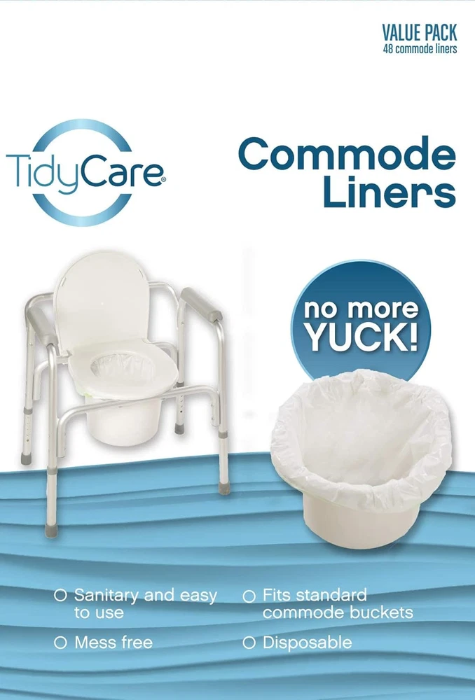 Store New Arrivals Add to Favorite View Feedback Disposable Bedside Commode Liners for Adult Portable Toilet Chair Seat Bucket and Bedpan | Value Pack of 48 Waste Bags | Universal Fit Liners for Home Medical Care Description Item model number 4332453849 Unit Count 48.0 Count Item dimensions L x W x H 10.5 x 1.5 x 6.5 inches Capacity 0.45 Kilograms Number of Items 48 Is Discontinued By Manufacturer No Product Dimensions 10.5 x 1.5 x 6.5 inches; 1.19 Pounds Material Plastic Item Weight 1.2 Pounds Material Feature Disposable Recommended Uses For Product Toilet Waste Item Form Bag Size 1 Count (Pack of 48) No More Yuck: Now there's no more need to clean out liquid and solid waste from portable commode toilets and bedpans. Each plastic commode liner is simple to insert and they are universal in size. Simply remove the liner from the commode chair after use and tie the drawstring for a seal-tight closure, then dispose safely in the garbage. 100% Leak Free: No leaking, guaranteed. TidyCare disposable commode bags keep everything tidy, sanitary, and hygienic while also saving time for care givers, the elderly and the bariatric. The commode disposable liners eliminate the need for cleaning or rinsing the commode bucket. Easy to Use: Our commode liners for bedside toilet chair bucket are designed for hassle-free use, especially by those who typically depend on using bedside commodes. This includes those in medical care, recovering from surgery, bariatric adults, seniors with early dementia, and other such conditions in which mobility is limited. Liners Only: This Value Pack comes with 48 commode liners. Each portable toilet liner fits standard-sized commode toilet buckets and are easily disposable. If you’re looking for absorbency, search for TidyCare Convenience Pack, which comes with our bedpan liners along with super-absorbent commode pads. TidyCare Cares: Our products such as the TidyCare Bedside Commode Liners for Portable Toilet Chair Bucket and Bedpan are assembled at Sunshine Industries, a vocational training facility for people with intellectual & developmental disabilities. Your purchase helps these individuals to work in a safe, encouraging & fulfilling environment. Product description ABOUT US We offer the best prices around on high quality products. Our E-store includes media such as books, movies, music and games while offering electronics, toys, sporting apparel, clothing, tools, general home, garden items and more. SHIPPING We are always working hard to ensure your package arrives as soon as possible. Please understand that some factors like weather, high postal traffic, and the performance of shipping companies are outside of our control. We offer free shipping to the lower 48 states and ship within 2 business days of payment, usually sooner. We do not accept P.O. Boxes. Please provide a physical address. RETURNS We offer a 30-Day Return Policy on items which you are not completely satisfied with. You have the option for a full-refund or an exchange of the item. No returns are available on items shipped outside of the USA. PAYMENT We accept PayPal. CONTACT US This page content is yet to come Please ad us to your favorite seller and visit again later Thank You