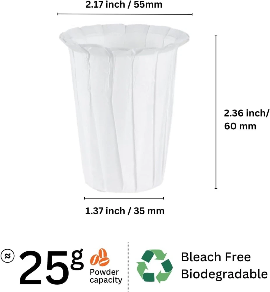 Disposable Coffee Filters for My K-Cup, K-Carafe, 100 Count, K Carafe-White Product Details Material: Paper Brand: Fanativita Shape: Cup Number of Pieces: 100 Unit Count: 100.0 Count Manufacturer: HAIRUI Package Dimensions: 7.91 x 4.76 x 2.44 inches Item Weight: 3.2 ounces Item model number: K-Carafe Coffee Filters Fit Reusable Carafe Filters Only: Designed for large capacity filter cups, such as My K-Cup, K-Carafe, Cuisinart SS-RFC and other large reusable filter cups (*Do not apply to regular reusable K-Cup filters) Enhance Your Coffee with Improved Filtration: Made from premium filter paper; Superior circulation; No bursting; Enhanced coffee flavour; Say goodbye to sediment Hassle-Free Cleanup: No mess, no sludge filter, just remove the disposable filter and ready for the next cup! Safe and Compostable: Oxygen cleaned; Bleach free; No chemical residue; Biodegradable and compostable Choose Your Own Coffee and Save Money: Now you can enjoy your favourite coffee blends without having to rely on expensive and often wasteful coffee pods Patent No. U.S. 10865039