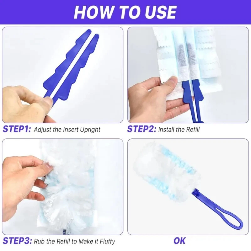 Description:100% New with High Quality Color:White and blue color are randomly shipped Features: SUFFICIENT QUANTITY: Can meet your needs and solve multiple cleaning tasks to keep your home and office clean and tidy. Sturdy and elegant gift packaging can be used as a Christmas gift for family or friends cleaning supplies. EXCELLENT STATIC ATTRACTION: Our duster refills have advanced electrostatic properties that effectively adsorb and trap dust, locking it in even the tightest of spaces, attracting dust, hair, dirt, etc. and avoiding dust from flying during the cleaning process. This ensures more thorough cleaning, reduces allergens and improves indoor air quality. MULTIFUNCTIONAL CLEANING TOOL: Duster replacement refills are suitable for a variety of cleaning tasks. Use them to remove dust and dirt from blinds, ceiling fans, furniture, bookcases, screens, murals, car interiors, windows, small decorations, etc. without scratching surfaces while cleaning. Its lightweight design and flexibility make it an ideal tool for cleaning hard-to-reach areas. THOUGHTFUL DESIGN: The refillable design is easy to replace when there is dust on the cleaning cloth, saving time and labor. The duster has a foldable handle for easy storage and an ergonomically curved design with a height difference between the replacement head and handle, providing a comfortable grip and easy reach even in tight spaces. Packing: Duster(Quantity depends on your choice) Note:Knead before use to make the duster head more fluffy 1.Due to the difference showing indifferent monitors, the picture may not reflect the actual color of the product. 2.Please allow 1-2% error due to the manual measurement. Hope you can understand. Thank you!