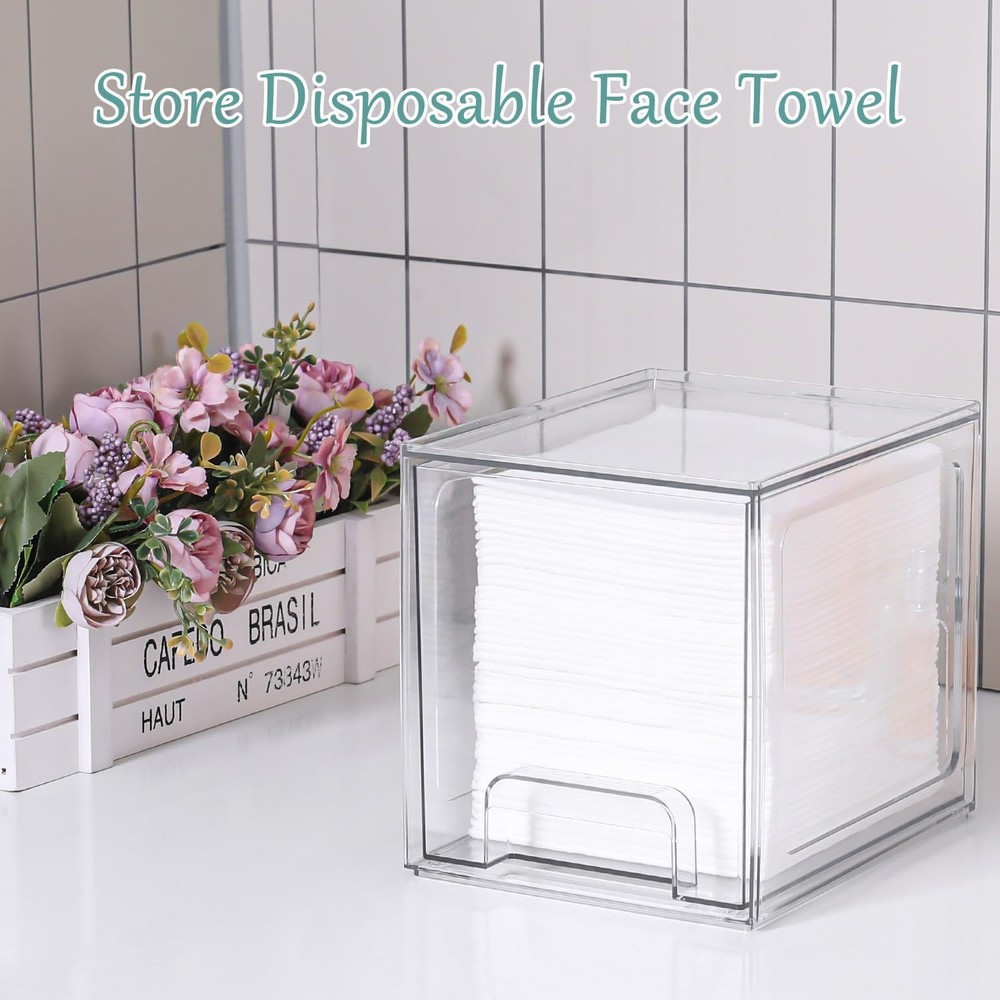 Disposable Face Towel Holder Intended For Clean Skin Club Transparent Description Features: [FUNCTION]: for storage disposable face towel and the top can hold cosmetics [PACKAGE INCLUDING]: face towel holder and non-slip pad [INNER BOX SIZE]: 5.5" * 7.1" * 6.5" [MATERIAL]: PET plastic Product Details: Specific Uses For Product: Cosmetics Material: Plastic Special Feature: Dustproof Color: Transparent Brand: VEGEVIGI Finish Type: Polished Unit Count: 1.0 Count Number of Items: 1 Manufacturer: VEGEVIGI Item Weight: 1.48 pounds Package Dimensions: 7.83 x 7.2 x 6.26 inches Country of Origin: China Finish: Polished Special Features: Dustproof Batteries Required?: No Specific Uses For Product: Cosmetics Material: Plastic Special Feature: Dustproof Color: Transparent Brand: VEGEVIGI Finish Type: Polished Unit Count: 1.0 Count Number of Items: 1 Manufacturer: VEGEVIGI Handling We will ship all orders within 3 business day of payment. Delivery We take pride in offering fast and reliable delivery for your orders! We are committed to getting your products to you as quickly as possible. Generally, we would like to inform you that all orders will be delivered to you within 1-3 business days after processing.However, in some cases, delivery times may vary depending on the buyer's location. Especially in remote or rural areas, the expected delivery time may be extended. In such situations, we do our best to ensure that your order reaches you as quickly as possible.If there are any delays, we will be happy to contact you to explain the situation. Our goal is to enhance your satisfaction with our fast delivery times. We work diligently to ensure that your order arrives safely.Trust us and enjoy our speedy delivery! Return Policy All items qualify for returns within 30 days of receipt. Buyer is responsible for return shipping on any item that is not damaged. Feedback We take our reputation seriously, we buy and sell online, so we understand the value of trust. If you are unsatisfied with your order, please contact us and we will work with you to resolve it to your satisfaction.