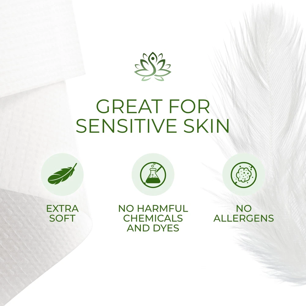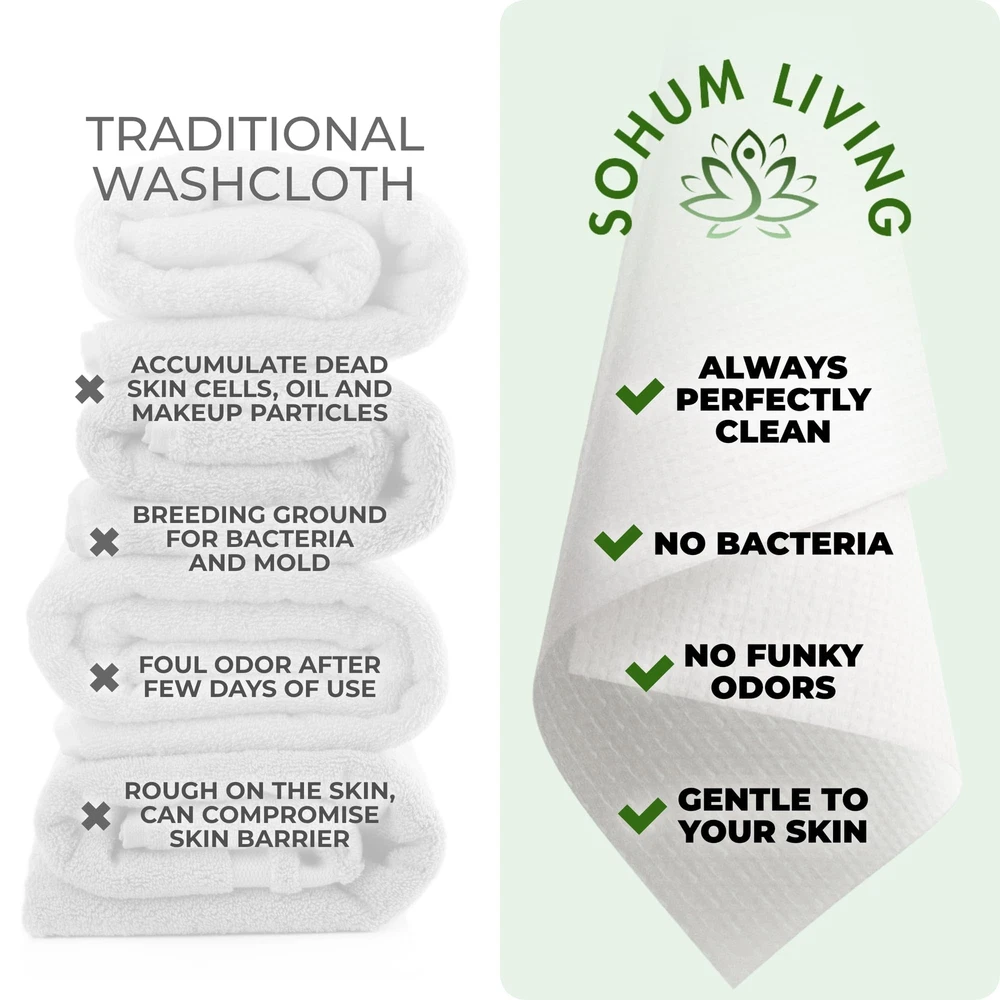 Introducing our premium Disposable Face Towels – the ultimate solution for your skincare and makeup needs. These versatile face are perfect for women seeking a convenient and hygienic way to cleanse and refresh their skin. Made from ultra-soft, durable materials, these towelettes are designed for all skin types, ensuring a gentle yet effective clean without irritation. Ideal for makeup removal, our makeup remover towels effortlessly lift away foundation, mascara, and other cosmetics, leaving your skin feeling fresh and clean. Use them as face cloths for washing or as for cleansing to remove impurities, excess oil, and dirt. The disposable nature of these towels makes them perfect for travel, gym sessions, or on-the-go use, ensuring a fresh towel every time. Choose face towels for a pure, hygienic, and convenient skincare solution that’s perfect for your busy lifestyle. Say goodbye to reusable cloths that harbor bacteria and say hello to clean, fresh skin every day with our disposable face towels! TOP-QUALITY FACE CLEANING TOWEL - Pamper your skin with our top-quality face cleaning towels. These super soft, durable cloths are perfect for everything from removing makeup to your daily skincare routine. Whether you're cleansing after a long day or just need a gentle touch, these towels have you covered. EXTRA LARGE AND DUAL SIDED - Our disposable face towels feature a dual-sided design, side is soft for gentle cleansing, and the other is textured for exfoliation. At 10 x 12 inches, these extra-large towels provide full coverage for your face and neck, making them perfect for makeup removal, cleansing, and more in with just towel. ULTRA SOFT & GENTLE - Incredibly soft and safe to use, these towels are safe and gentle on all skin types, including sensitive skin. Use them with confidence, knowing they won’t irritate or harm your skin. Removes dirt, excess oil, long-wear foundation, and any residue from your face, these disposable towels offer a thorough cleansing experience. Make your skin feeling fresh, clean, and rejuvenated after every use. HOME AND PROFESSIONAL USE - Whether you need a face towel, wipe, or tissue, these disposable towels are perfect for various applications. : Perfectly suited for senior centers, hospitals, schools, nursing homes, healthcare facilities, and any professional environment, these disposable face towels meet the highest standards of hygiene and convenience, ensuring a safe and effective solution for all. SAFE & CLEAN - Our disposable face towels are free from unnatural chemicals, ensuring a safe and clean experience. Perfect for those who prioritize skin and are mindful of the products they use.