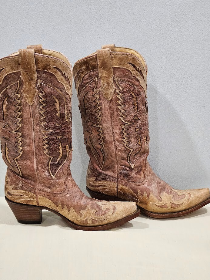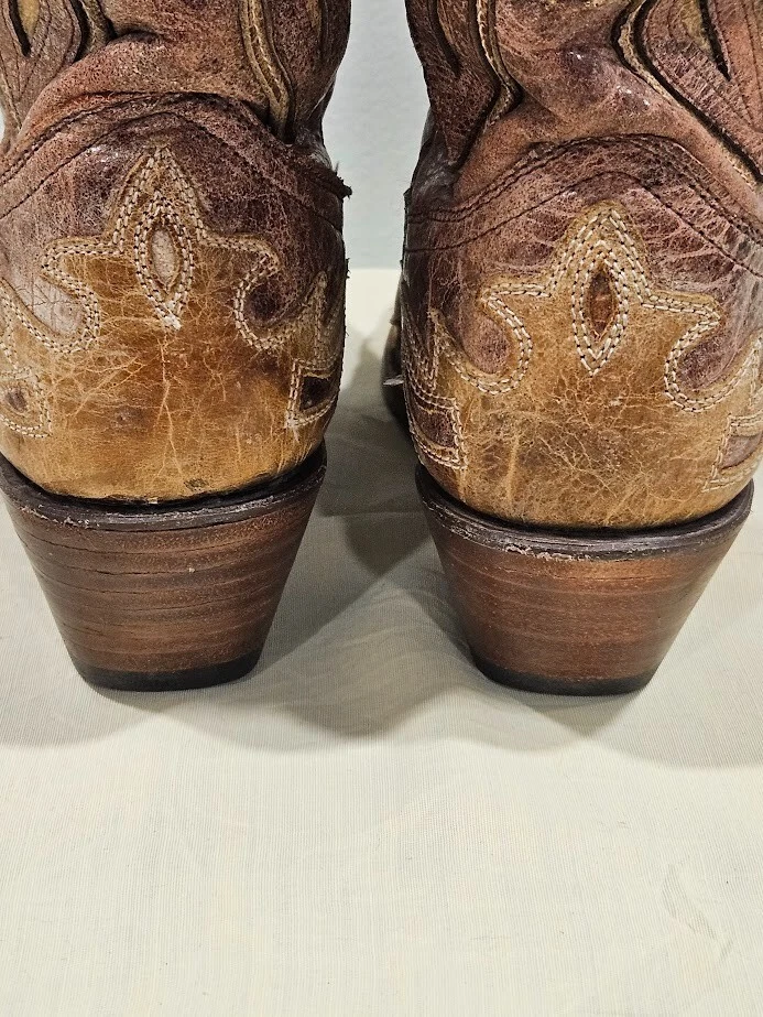 Corral Tan Leather Crackle Distressed Saddle Boot R2227 Size 8.5M. There is no damage or stains. Ships from a smoke free home! Please see all photos for exact item condition. Thank you for checking out my store! All items are shipped within 1 or 2 business days. Make a bundle to save on shipping cost.