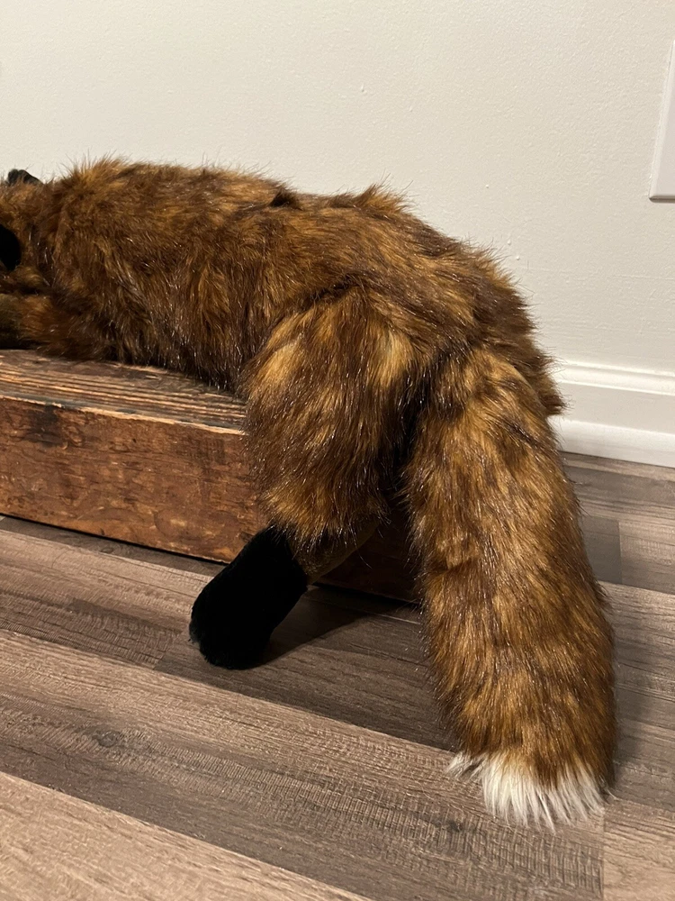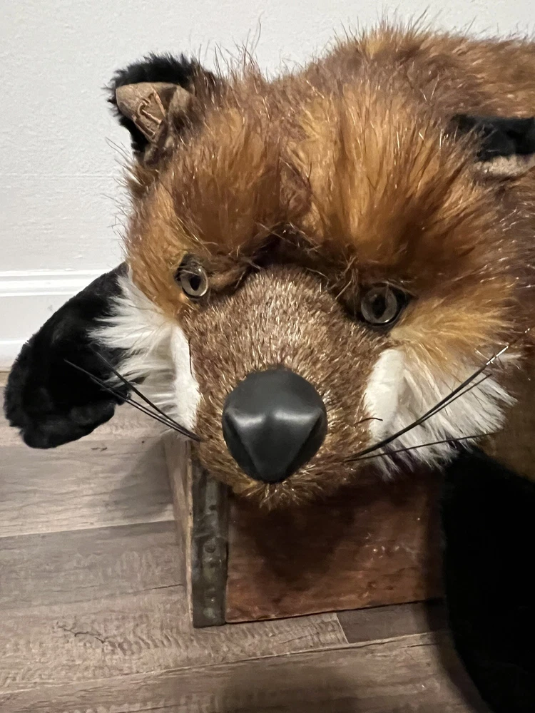 This Ditz Designs Red Fox stuffed animal is a handmade piece that looks realistic and is perfect for children aged 3 and above. The plush toy is 32 inches in size and features a vibrant red color that is sure to catch the eye of any kid or collector. The stuffed animal is a retired piece and has no modified features, making it a rare find for any enthusiast. Its recommended age range spans from 3-4 years to 17 years and up, making it a versatile gift for anyone who loves stuffed animals. This toy is in excellent used condition and is a great addition to any collection. This does have some weight to it. It’s amazingly beautiful!