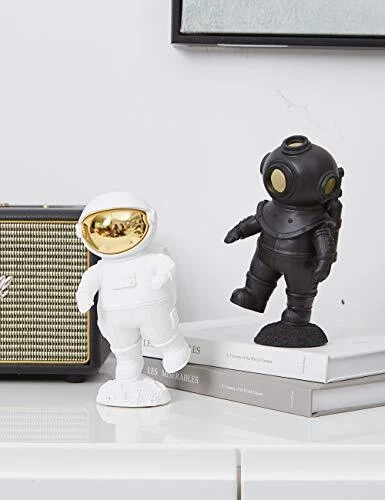 Statue Figurine Astronaut Sculpture Spaceman Decor for Home Gifts Souvenirs Giftbox Polyresin Black 18.5cmH 【THE DESIGN】– Apollo astronauts on the moon modern art statue spaceman art.Fun and educational for both boys and girls alike.Educational toys crafts can help start they journey to space.To clean, dust with soft brush or cloth. 【SPACEMAN】– The astronauts sculpture is perfect home or office decoration. Put them in your room and decorate your room, like desk, table, bookcase, shelf, dining table, bedside. Let your home(room) have more scenic spot. 【PREMIUM QUALITY】L-10cm W-9.5cm H-18.5cm, The spaceman gifts is Made from Finest Polyresin.100% lead free and environmental paint,it safe for and . 【PERFECT GIFT】 – Packaged in printed box ready for gift-giving. Whether it's for a birthday, Christmas, or any special occasion,spaceman statues can be as excellent gift for your families, , lover, friends and it's can give them a lot of memory and imagination.Also can be an souvenir. 【SAFETY PACKAGE】- Each statue is packaged securely in Styrofoam to ensure a safe delivery, and avoid breakage in transit.