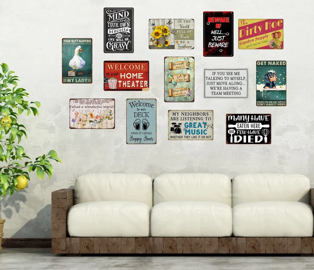Funny Office Metal Tin Signs if You See Me Talking to Myself Just Move Along We're Having a Team Meeting Cubicle Decor Accessories Women Cubicle Home Farmhouse Bar Wall Decorations 8x12 Inch Product Details Color: tin sign 11 Size: 8x12 Inch Brand: MKsbyce MPN: metal si1gn11 UPC: Does not apply EAN: Does not apply Color: tin sign 11 Brand: MKsbyce Material: Tin, Metal Theme: Words & Quotes Mounting Type: Wall Mount Product Dimensions: 12"L x 8"W Shape: Rectangular Style: Art Deco Item Weight: 5.3 ounces Manufacturer: MKsbyce Country of Origin: China Item model number: metal si1gn11 Size:8 X 12 inches (20cm X 30cm) Quality Material:The retro tin sign is made of quality iron material, durable and waterproof, printed by high-definition digital printing ink, the vivid color and artistic design will last for long time use. Easy To Install:Four small holes are pre-drilled on the top and bottom of this painting, and the four small holes of each logo can be hung easily.For safe handling, the edges of each tin label are rolled and crimped.It can be placed on the table or hung on the wall. Classic Vintage Decor:The retro collectible tin sign is an interesting and attractive decoration for your home, outdoor, office, bar, restaurant, Kitchen, bathroom, farmhouse, bedroom, coffee bar, garden, dormitory, man cave or Garage! It looks perfect gift for family and friends! Quality Service:If you have any questions about our products, please contact us in time, we will reply to you as soon as possible. Welcome Go To Our Store.There Are More Styles in the Store, Welcome to Buy Them All. About the features of this product Features: 1.Waterproof,high quality, eco-friendly, not easy to bend, clean simple and Colorfast. 2.Pre- drilled holes for easy hanging, perfect for a wide range of uses. 3.Manufactured with folded edges for safety and stability. 4.Have the effect of rust.The product is deliberately distressed, with a retro effect, not rusty. 5.Suitable for a variety of places, such as the wall decoration of bars, cafes, kitchen, bathroom,restaurants, billiard rooms, hotels, clubs, etc. 6.Creative,contracted,fashionable design,a wonderful gift idea for your relatives and friends. We Provide the Best Way to for You to Get Whatever You Want!Take it and Make a Difference a Good Life is Actually So Simple.