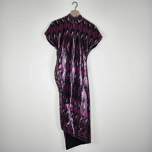 This stunning Divia Dress in Fuchsia Ikat Sequin by Misa Los Angeles is the perfect choice for any formal or wedding occasion. The dress features short sleeves, a maxi style, and a long length, making it ideal for those who want to make a statement. The rich purple color and sequin accents add a touch of glamour to the overall look, while the size XS ensures a perfect fit for women of all shapes and sizes. Whether you're attending a party, cocktail event, or formal dinner, this dress is sure to turn heads. Its unique style and attention to detail make it a standout piece that will make you feel confident and stylish. So why wait? Add this gorgeous Divia Dress to your wardrobe today and get ready to make a statement wherever you go!