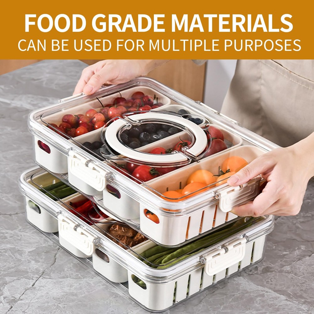 Divided Serving Tray with Lids Handle and Removable Colanders Snackle Charcuterie Board