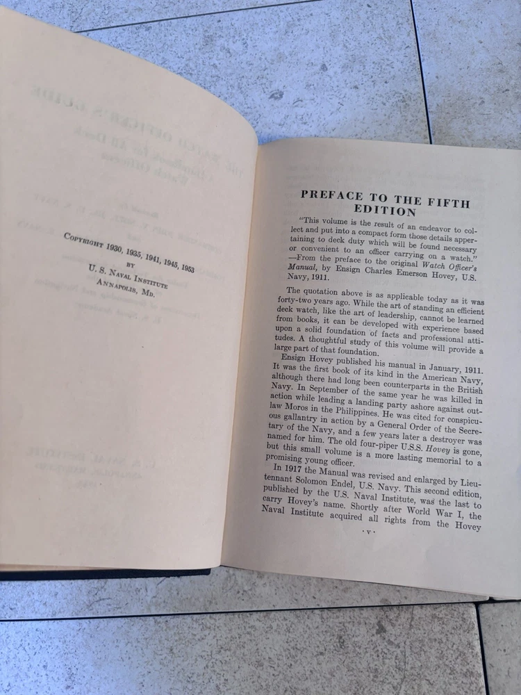 Type: Book gtin13: Does not apply Format: Paperback ISBN: Does not apply Book Title: Division & Watch Officers Guide Intended Audience: Young Adults, Adults Inscribed: No Ex Libris: No Author: U.S. Naval Institute Topic: U.S. Navy Era: 1950s Vintage: Yes Country/Region of Manufacture: United States Narrative Type: Nonfiction Personalized: Yes Language: English Publication Year: 1950 Publisher: U.S Naval Institute