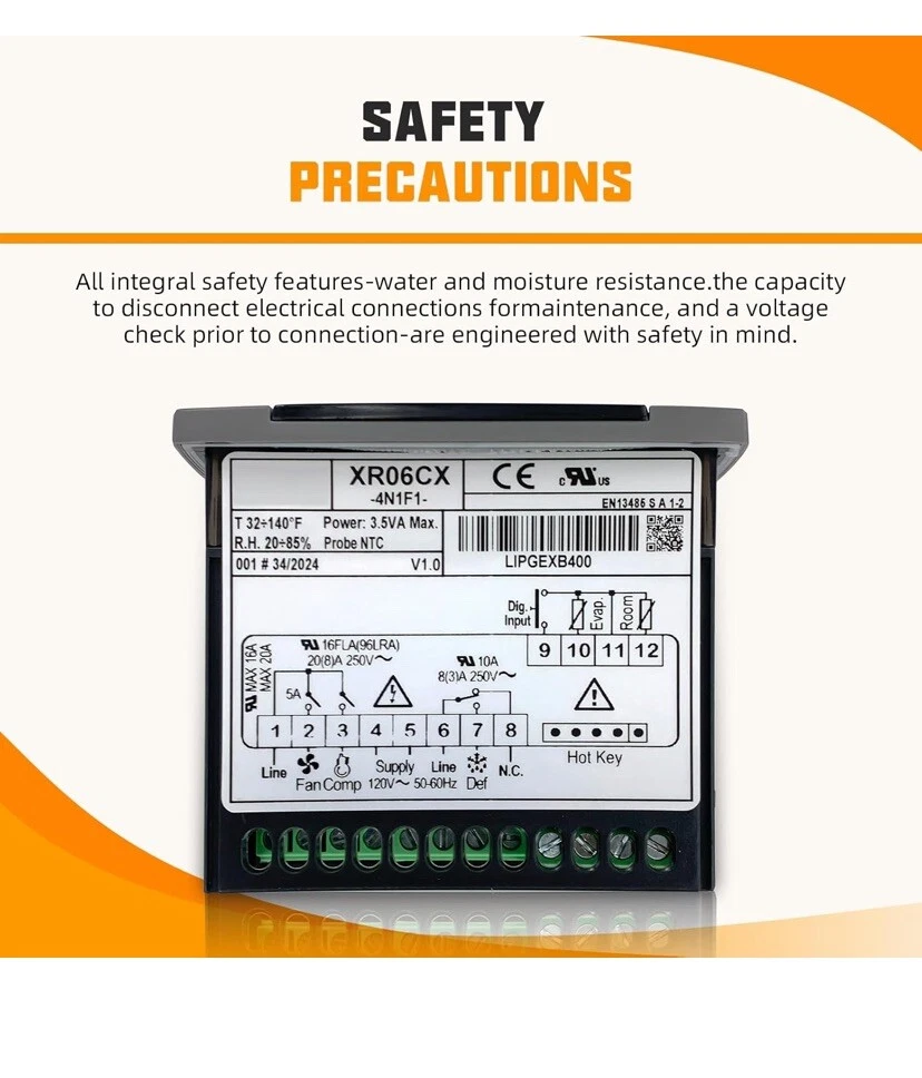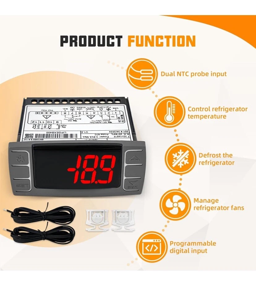 This item is used but is in excellent working condition with no major flaws , scratches or imperfections Replacement Part Number】XR06CX-4N1F1 Replace Number: W0302184. 【Exact Fit】XR06CX-4N1F1 Digital Temperature Controller Compatible with Migali, Atosa etc, Chest Freezer, Commerical Kegerator, Compact Fridge, Compressor Wine Fridge, Kegerator Tank/Cartridge, Kegerator Tap, Larder Fridge, Miniature Kegerator, Mini Freezer, Mini Fridge. 【Performance】Real-Time Temperature Monitoring, with automatic adjustment of the system's operating status based on the preset temperature range to maintain a stable temperature. 【High Quality 】 This part is made of quality materials and backed by team of product experts with more than a century of refrigerationexperience to ensure reliable performance, it's all in the details, and this Temp Controller is an essential piece of the puzzle. 【Easy Installation】Fitting the Controller is straightforward and uncomplicated, ensuring minimal downtime for your equipment, so if you're looking for a part that will enhance the performance and extend the life of your machinery, make the smart choice. The Controller is not just a purchase, it's an investment in the reliability and effectiveness of your machinery, because your machinery deserves nothing but the best.