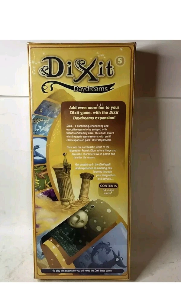 Dixit Daydreams Card Game Expansion Pack is a family game that can be played with 3-6 players. The game is manufactured by Asmodee and can be enjoyed by boys and girls of ages 8 and above. The game title is Dixit which is a strategy game type. The game was published in 2016 and the theme of the game is imagination. The pack contains 84 image cards that can be used to create your own stories and games.