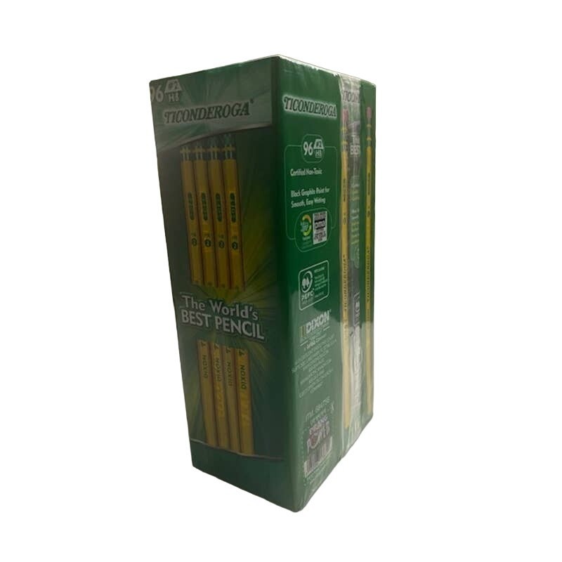 Certified Non- Toxic, Black Graphite Point for smooth, easy writing. This pack contains 96 Dixon Ticonderoga Woodcase Pencils, each with a soft yellow barrel and an HB #2 lead. These pencils are perfect for everyday use, whether you're taking notes, drawing, or writing letters. Made in Mexico, these pencils are of high quality and perfect for office or school use. The Dixon Ticonderoga brand is known for its excellent quality pencils and this pack is no exception. The pencils are easy to sharpen and have a smooth writing experience.