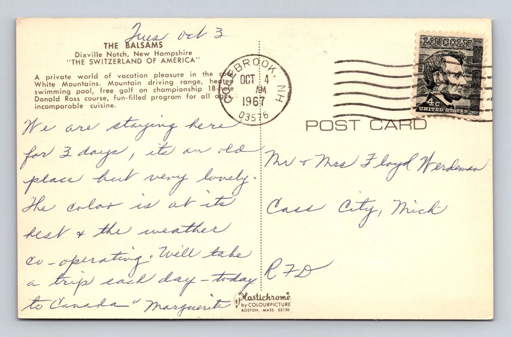 Dixville Notch NH-New Hampshire, the Balsams, Advertising Vintage c1967 Postcard