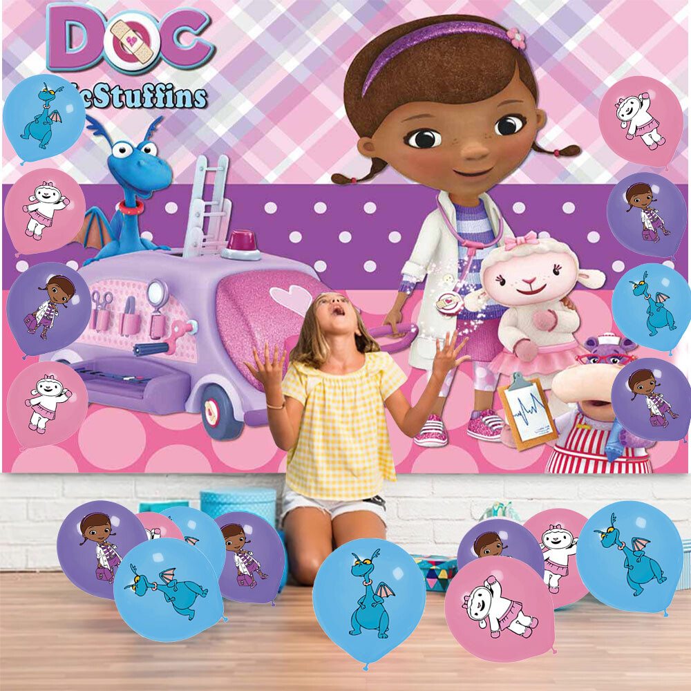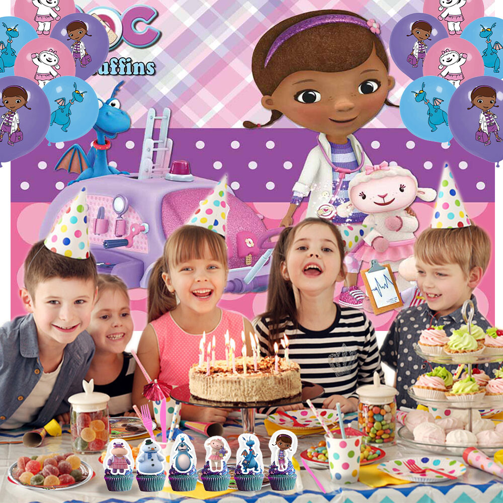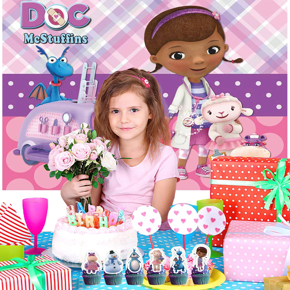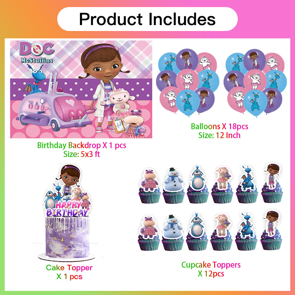 About this item 【Themed Sets of Matching Units】: ☰ Take this good favor for themed party to impress your kids and their friends. ☰ Enrich your kids’childhood dream well,giving them a fantastic surprise. 【Party Decor Is So Easy】: ☰ It contains all of your Doc McStuffins theme birthday party tableware needs and is completely disposable. ☰ You can save more time to enjoy this party with your guests. 【Real Savings For You】 ☰ The shiny large backdrop decor will attract you eyes and make everyone laugh.The banner cloth is printed in high definition, making it the perfect party background wall. It is made of thick cloth, not paper. ☰ You will save over 70% compared to buying all 2 Doc McStuffins party supplies separately. 【Super Value Doc McStuffins Package】: ✪ 1PCS X Large Happy Birthday Banner 5x 3ft(150x100cm) ✪ 18PCS Balloons. ✪ 1PCS X Cake Topper. ✪ 12PC X Cupcake Toppers. 【After Sale Service】: ☰ We try our best to bring the best use experience to our customers. ☰ If you are not satisfied with the purchase of this set or have any questions about the product,please contact us at any time.We will definitely solve the problem for you in the first time. ☰ We can aslo custom backdrop other size or pictures you want. Any questions please contact us.