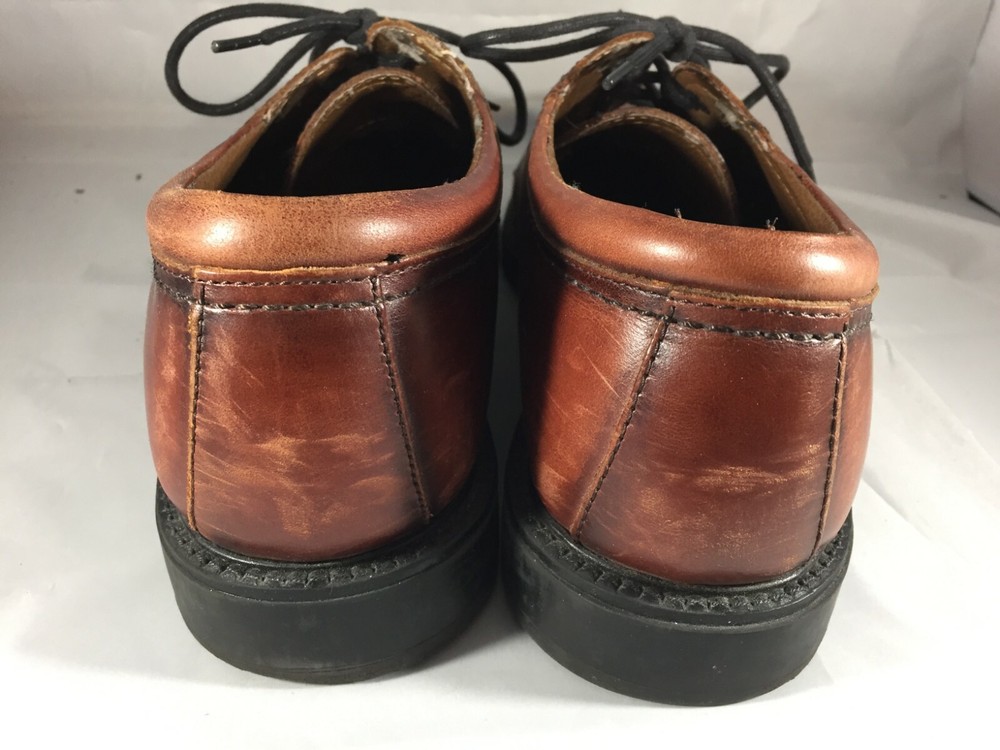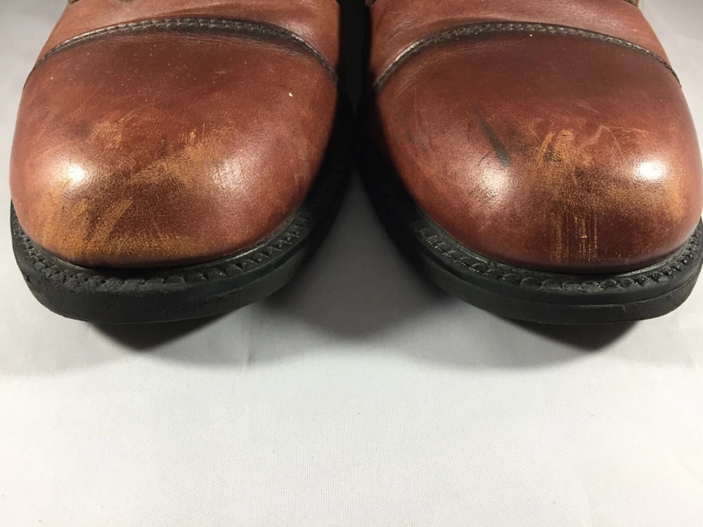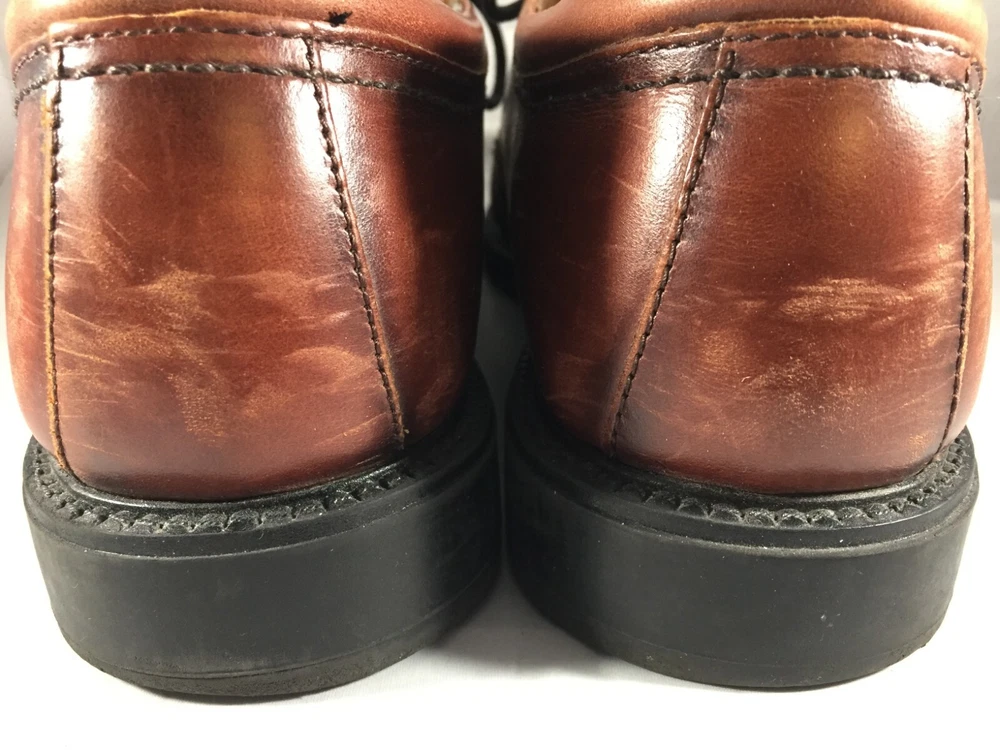 The Dockers Brown Leather Cap Toe Shoes are a stylish and versatile option for men looking for a sophisticated dress shoe. With a classic Oxford style, lace-up closure, and solid brown color, these shoes are perfect for a variety of occasions including weddings, formal events, or going out in the city. Made with high-quality leather, these shoes feature a cap toe design that adds a touch of uniqueness to the traditional style. The rubber outsole provides durability and traction, making them suitable for all seasons. Very good preowned condition with normal preowned wear. Please see all photos.