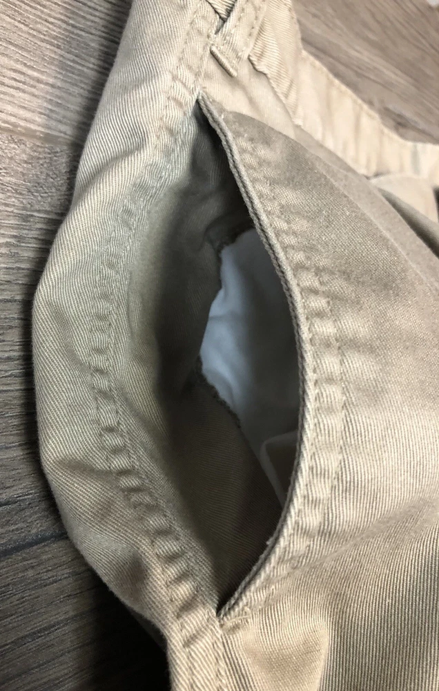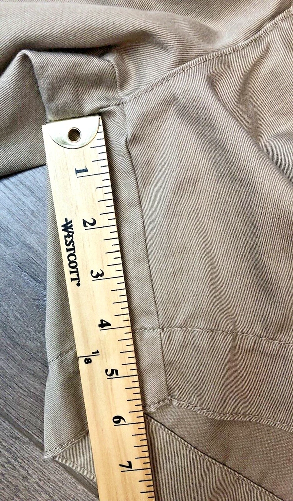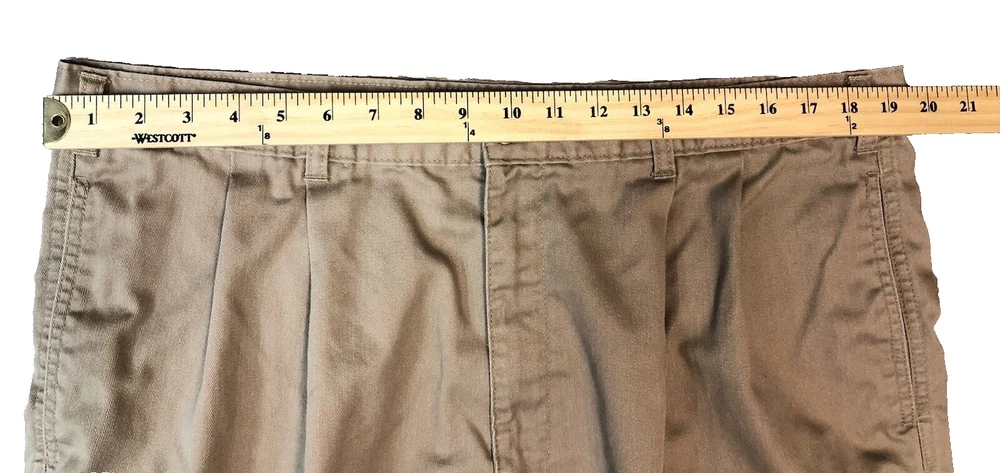Tan Khaki Chinos Pockets Casual Levi’s Cotton Dockers Shorts Men’s Size 40 Pants Pleated Mild stretch to material but not at waist The darker color in pictures 2 & 3 is the truer color CONDITION Preowned Good condition See pictures for details and measurements Please contact us with any questions or concerns. Thanks!