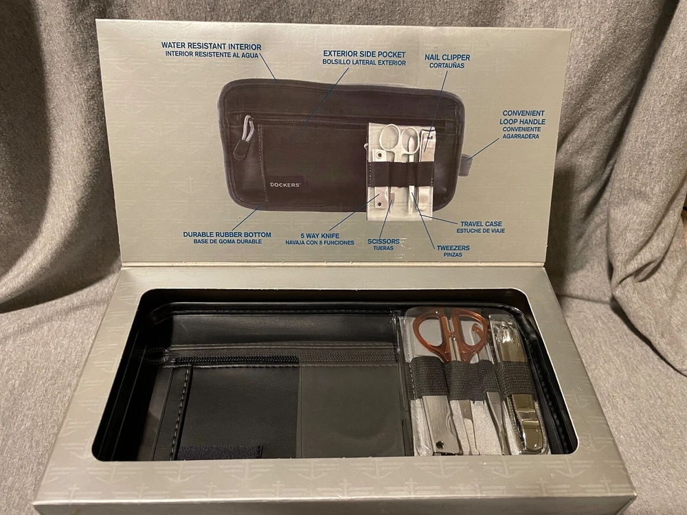 Dockers Travel Kit with Grooming Set Personal Care Travel Bag NIB Opened the box as I just wanted to check on it. Been in storage for a while. Everythings new.
