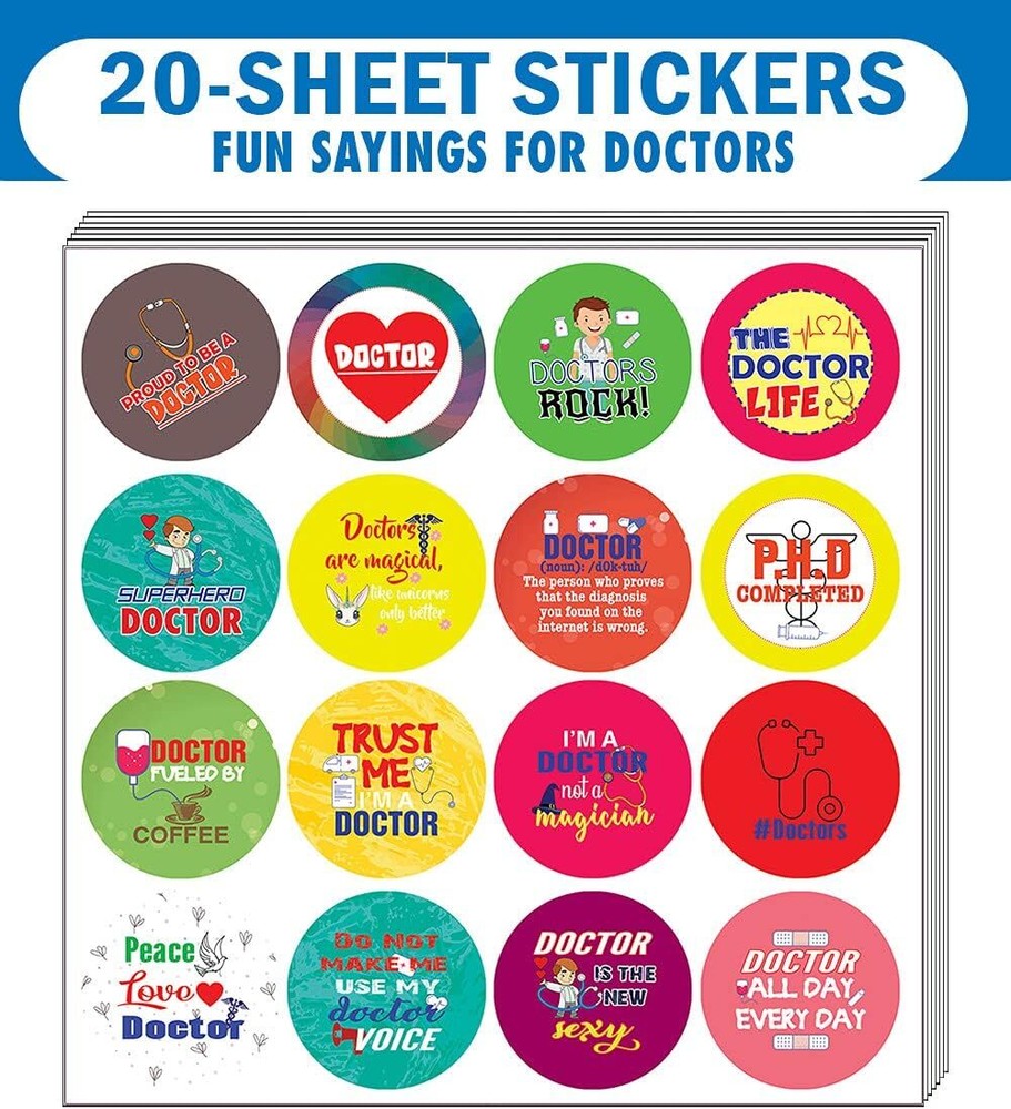 16 UNIQUE DESIGNS INSPIRING STICKERS FOR YOUR DIY PERSONALIZED DECORATIONS - I am a Doctor Stickers (20-Sheets x 16 Designs). These colorful and uniquely inspiring round shaped stickers are the best tool for DIY decoration and personalization of your belongings. GREAT STOCKING STUFFERS, TEACHING SUPPLEMENTARY MATERIALS, AND GIVEAWAY - Great stocking stuffers gifts for Doctors, Medical Professionals, Men Women Adult. A perfect design to give during guidance sessions, classroom activities, school giveaways, birthdays, anniversaries, family day, and any other special occasions. MADE WITH DURABLE AND WATERPROOF MATERIALS - There is a lamination or coating to make the stickers high water resistant, and WILL NOT fade from the water. The stickers can stick it anywhere you like, and it sticks there and lasts a long time. A COLORFUL AND DECOR STICKER DECAL - Each sheet with 16 individual round stickers. There are 20 Sheets, with a total of 320 pieces of stickers. STICKER SIZE: 1.5 INCHES IN DIAMETER I am a Doctor Stickers (20-Sets X 16 Designs) COLORFUL AND COLLECTION OF TEXT STICKERS • Well designed. • Very encouraging. • Self-adhesive. I am a Doctor Stickers (10-Sets X 6 Cards) are super fun to collect; you can't have just one! That's why you will find a selection of stickers right here. Each package comes with different stickers in a variety of designs. Stick them here, stick them there, stick them everywhere! Everyone will love these self-adhesive stickers. These colorful stickers are perfect for any adults and these come with very inspiring messages and bright pictures. A fun, inexpensive way to add a decorative, notes, and stationery. Delight yourself with uplifting messages designs that are very encouraging. I am a Doctor Stickers (10-Sets X 6 Cards) perfect for giveaways, behavior incentives, prizes! These stickers are acid-free, nontoxic, and safe for use on photos. This product comes with a 60 days money back guarantee. You can return them to us for a full refund.