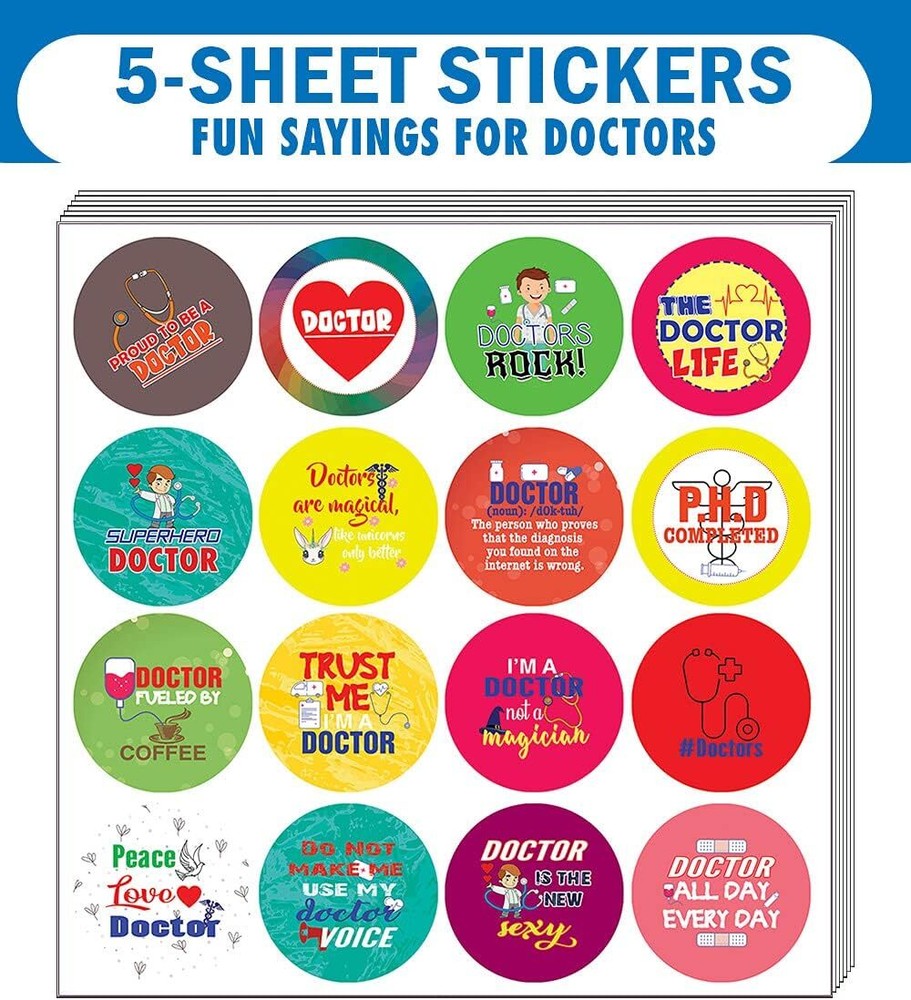 16 UNIQUE DESIGNS INSPIRING STICKERS FOR YOUR DIY PERSONALIZED DECORATIONS - I am a Doctor Stickers (5-Sheets x 16 Designs). These colorful and uniquely inspiring round shaped stickers are the best tool for DIY decoration and personalization of your belongings. GREAT STOCKING STUFFERS, TEACHING SUPPLEMENTARY MATERIALS, AND GIVEAWAY - Great stocking stuffers gifts for Doctors, Medical Professionals, Men Women Adult. A perfect design to give during guidance sessions, classroom activities, school giveaways, birthdays, anniversaries, family day, and any other special occasions. MADE WITH DURABLE AND WATERPROOF MATERIALS - There is a lamination or coating to make the stickers high water resistant, and WILL NOT fade from the water. The stickers can stick it anywhere you like, and it sticks there and lasts a long time. A COLORFUL AND DECOR STICKER DECAL - Each sheet with 16 individual round stickers. There are 5 Sheets, with a total of 80 pieces of stickers. STICKER SIZE: 1.5 INCHES IN DIAMETER I am a Doctor Stickers (5-Sets X 16 designs) COLORFUL AND COLLECTION OF TEXT STICKERS • Well designed. • Very encouraging. • Self-adhesive. I am a Doctor Stickers (2-Sets X 6 Cards) are super fun to collect; you can't have just one! That's why you will find a selection of stickers right here. Each package comes with different stickers in a variety of designs. Stick them here, stick them there, stick them everywhere! Everyone will love these self-adhesive stickers. These colorful stickers are perfect for any adults and these come with very inspiring messages and bright pictures. A fun, inexpensive way to add a decorative, notes, and stationery. Delight yourself with uplifting messages designs that are very encouraging. I am a Doctor Stickers (2-Sets X 6 Cards) perfect for giveaways, behavior incentives, prizes! These stickers are acid-free, nontoxic, and safe for use on photos. This product comes with a 60 days money back guarantee. You can return them to us for a full refund.