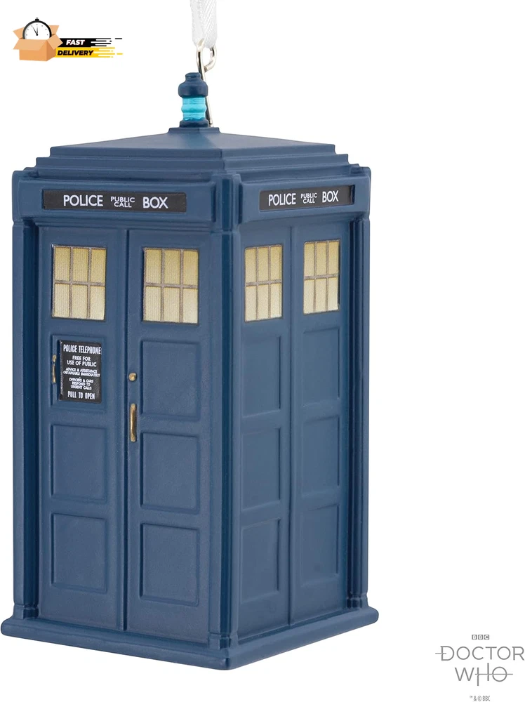 Store New Arrivals Add to Favorite View Feedback Contact Doctor Who Tardis Christmas Ornament (0002HCM9156) Description Item model number 0002HCM9156 Assembly required No Batteries required No Product Dimensions 1.48 x 1.48 x 3.03 inches Country of Origin China Perfume Unscented Item Weight 3.17 ounces Number of pieces 1 Included Components Ornament Batteries Required: False Delight "Doctor Who" fans during the holidays with this TARDIS Christmas ornament featuring the iconic blue police call box timeship. "It's bigger on the inside." Great Christmas gift idea for fans of "Doctor Who." Resin ornament is ready to hang on your Christmas tree with a hanger attachment. Purchase Includes: One Hallmark Christmas tree ornament packaged in a box. Ornament Size Approx.: 1.48 x 3.03 x 1.48 Unit count: 1.0 Delight "Doctor Who" fans during the holidays with this TARDIS Christmas tree ornament. The TARDIS (Time And Relative Dimension In Space) decoration features the iconic blue police call box timeship—and it's bigger on the inside. Hallmark Ornaments celebrate characters and personalities from contemporary and classic movies, TV shows, toys, entertainment and sports. Each festive and collectible ornament is perfect for sharing with family and friends. BBC, DOCTOR WHO and TARDIS (word marks and logos) are trade marks of the British Broadcasting Corporation and are used under license. BBC logo BBC 1996. Doctor Who logo BBC 2018. Licensed by BBC Studios. ABOUT US We offer the best prices around on high quality products. Our E-store includes media such as books, movies, music and games while offering electronics, toys, sporting apparel, clothing, tools, general home, garden items and more. SHIPPING We are always working hard to ensure your package arrives as soon as possible. Please understand that some factors like weather, high postal traffic, and the performance of shipping companies are outside of our control. We offer free shipping to the lower 48 states and ship within 2 business days of payment, usually sooner. We do not accept P.O. Boxes. Please provide a physical address. For shipping outside of the continental USA, we only use eBay's Global Shipping Program.The item is shipped to KY and then sent to the rest of the world. International customers are responsible for all duties and taxes. Continue to check out in order to calculate costs for shipping the item to your country. Messages regarding eBay's Global Shipping Program MUST be directed at eBay EXCLUSIVELY. RETURNS We offer a 30-Day Return Policy on items which you are not completely satisfied with. You have the option for a full-refund or an exchange of the item. No returns are available on items shipped outside of the USA. PAYMENT We accept PayPal. CONTACT US This page content is yet to come Please ad us to your favorite seller and visit again later Thank You CUSTOMER SATISFACTION We try our very best to make sure every customer is completely satisfied. If there's a problem, message us! We're happy to help. WE ACCEPT Copyright © 2021 AutoDS. | All Rights Reserved