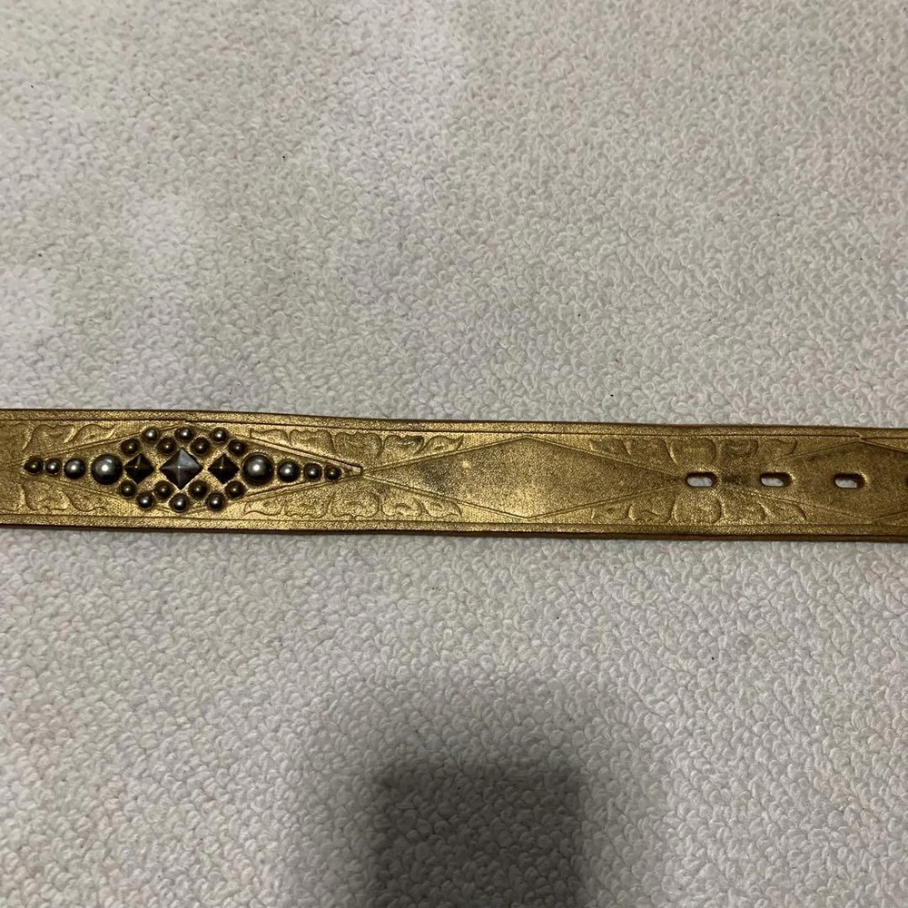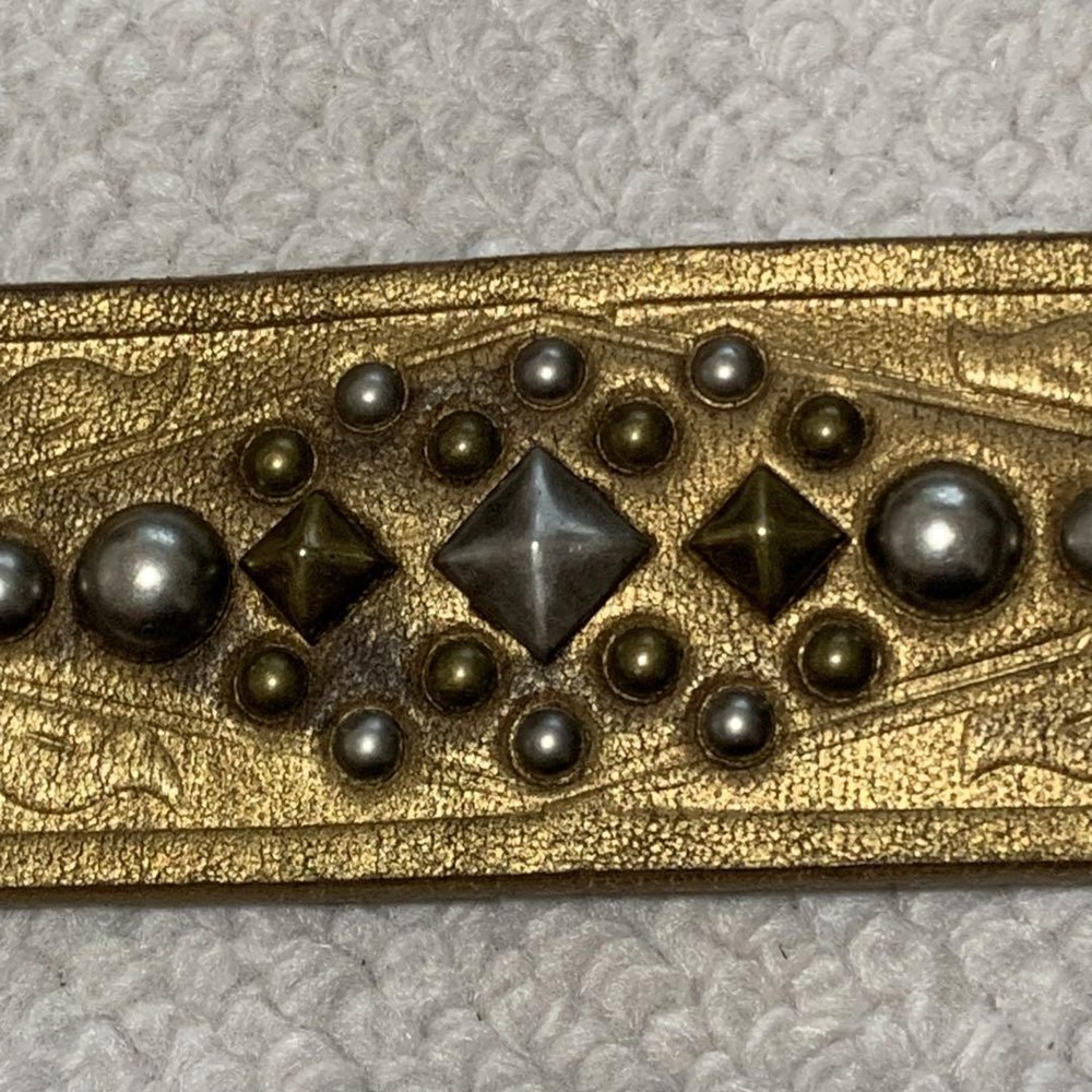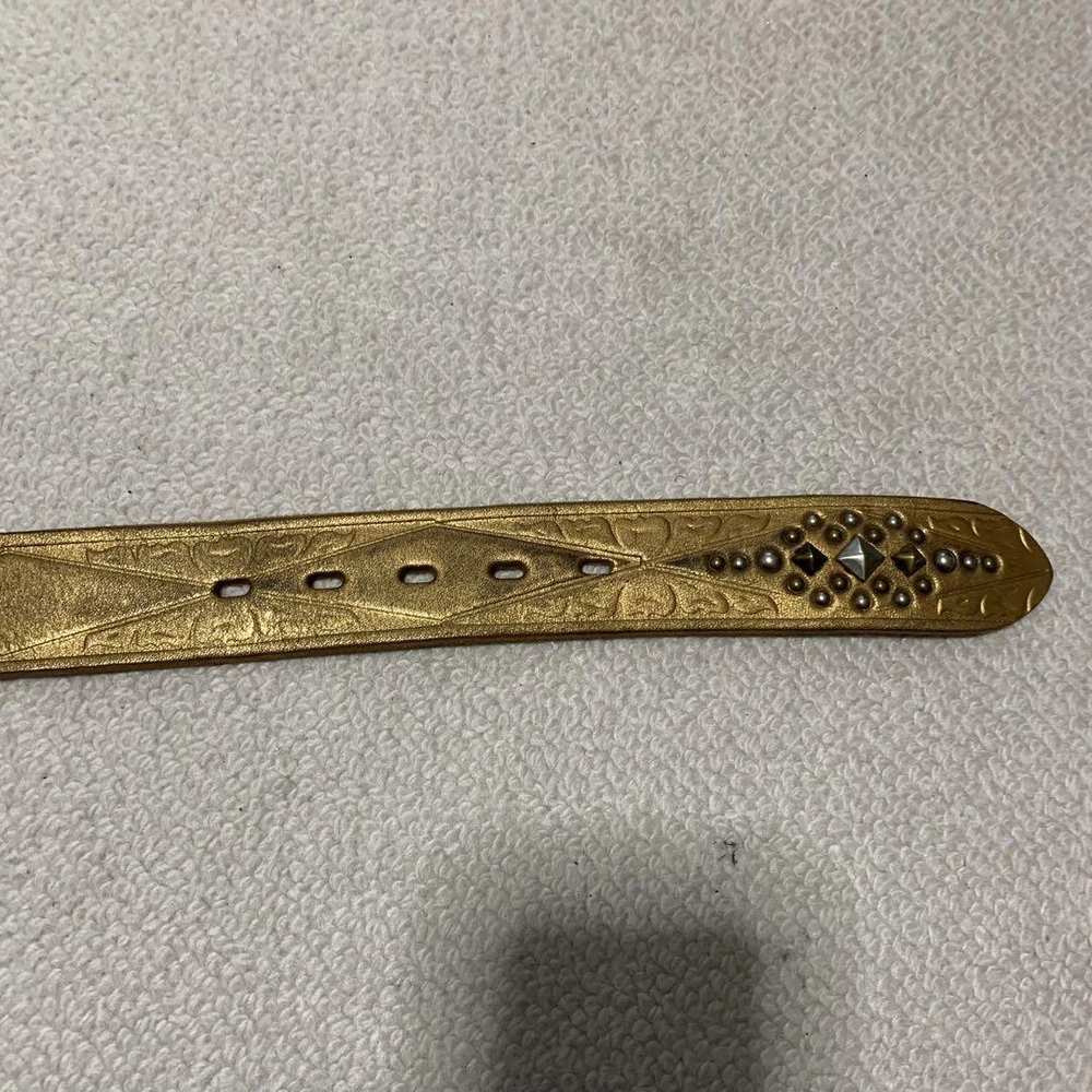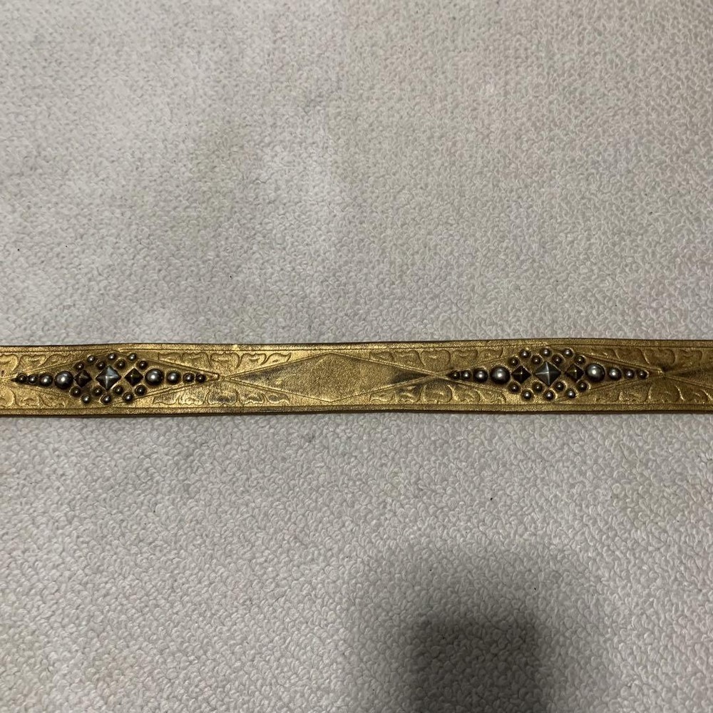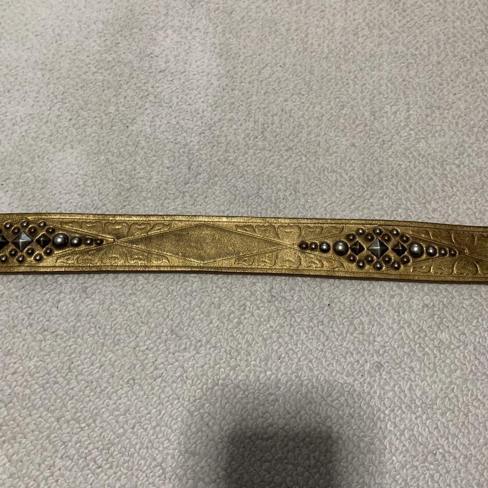 Dodeka Buckle Rockstud Gold Leather Wide Belt Unisex 80.5 cm Used Features Specifications Dodeka Buckle Rockstud Gold Leather Wide Belt Type: Unisex Condition: Used Product Details: Brand: Dodeka Material: Gold Leather Width: 4 cm Waist Size: 80.5 cm - 90.5 cm (measured at belt holes) Buckle Size: 7.4 cm x 6.0 cm Color: Gold Condition Notes: The belt is in good condition with clean belt holes. There is slight color fading due to use. Please note that it has been stored for a long time, so minor wear may be present. Additional Information: No original box is included; the item will be securely wrapped for shipping. Title Dodeka Buckle Rockstud Decoration Gold Genuine Leather Belt Wide Item Descriptions Thank you for taking a look at the item we are listing. This item is a used item. If you have any questions or concerns about this item, please feel free to contact us. We also have many other items on ebay besides this item. It would be great if you could take a look at that as well. If you do not see the item you want in our listings, please contact us and we will do our best to find it for you. We will do our best to find the item you want. Please make sure you understand all of our policies, including our sales policy, before you buy. We are selling this item in accordance with ebay's policies. Please be sure to review ebay's policies before making a purchase Handling Time Handling Time : 10 business days Due to the ongoing global holiday season, there is a significant increase in the handling of packages by shipping companies. Therefore, it is possible that there may be delays in pickup, shipping, and during transit. Please make your purchase with an understanding of these potential delays. In the event of any delays, rest assured that we will investigate and take responsibility. Please buy with confidence. Message For You Thanks for taking a look at my products. We hope you will consider them. I am listing on ebay with my company. I am listing my products on ebay in Japan. I have only slight feedback. It may be making you uncomfortable. But don't worry. I will provide courteous and responsive service. We also have a variety of other products for sale. We hope you will take a look at those as well. If you are looking for a particular item that is not in my listing, please do not hesitate to contact me. I will look it for you. ※All of the products we sell are cleaned and disinfected during inspection. We hope you will consider purchasing our products. All of the products we sell are cleaned and disinfected during inspection. Please be sure to review and understand the policies listed below before making a purchase. If you have any questions, please contact us. There is an inquiry button at the top. Notice Because,the international air shipping forbid to ship liquid,powder and batteries, If you purchased goods containing such items, we will not be putting them packing. Please understand them before purchasing the product. INTERNATIONAL BUYERS Import duties, taxes, and fees are not included in the price or shipping charges of the items you purchase. You are responsible for payment of any import duties, taxes, and fees. If you are unsure of the price of import duties, taxes, and fees, please contact your country's customs office for confirmation. If you owe import duties, taxes, or fees, they will be charged to you by the shipping company. When we ship goods, we do not undervalue the declared value below the value of the goods. We also do not ship as gifts. These are strictly prohibited by eBay policy. Please refer to the following for more information. https://www.ebay.com/help/buying/shipping-delivery/changing-delivery-address-method/international-purchases-shipping?id=4057 There are also other ebay policies that buyers should review. Please be sure to abide by them before making a purchase. FEEDBACK POLICY We provide timely customer support to all purchasers. We will respond to your inquiry within 24 hours. Our working hours are from 10:00 to 20:00 Japan time. Once you have received your item, please make feedback for us as this will let us know that you have received your item. In case of damage, please be sure to take pictures of the following items and send them to us 1. Photograph of the entire item 2. Photograph of the damaged part 3. A photo of the condition of the cushioning material in the package 4. A photo of the condition of the cardboard box it arrived in SHIPPING POLICY Shipping methods are Japan Post, FedEx, and DHL. If you select "Economy Shipping from outside US" or "Economy International Shipping" at the time of purchase, your order will basically be shipped by Japan Post. All shipments are tracked. Please buy with confidence. Shipping by Fedex or DHL is the fastest shipping method available. This can be changed for an additional charge. Please select "Standard Shipping from Outside the U.S." or "International Standard Shipping" if you prefer. Shipments are usually made within 5-10 business days. The earliest we can ship is the day after the ship date, and in some areas it may take several days, but we try to get your order to you as soon as possible. A shipment control number or tracking number will be sent to the customer as soon as it is issued. We strictly adhere to package handling times. Estimated arrival time in Economy Asia: 2 to 3 weeks Oceania: 2 weeks North America: 2-3 weeks Middle East: 2-3 weeks Europe: 2-3 weeks *It may take longer than the estimated arrival date due to carrier and traffic conditions in each region. Due to global disruptions, we may not be able to ship to some areas. Subject to change on a daily basis. If we find after purchase that we are unable to ship, we will issue a full refund. PAYMENT POLICY We accept a variety of payment methods. Please use the payment method of your choice. These are all offered at eBay Managed Pyments. RETURNS POLICY Basically, no claims, no returns. Please take a good look at the pictures listed and be sure t