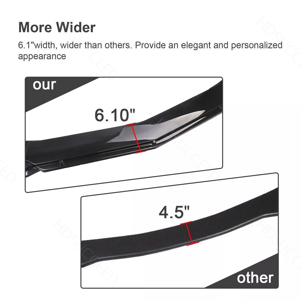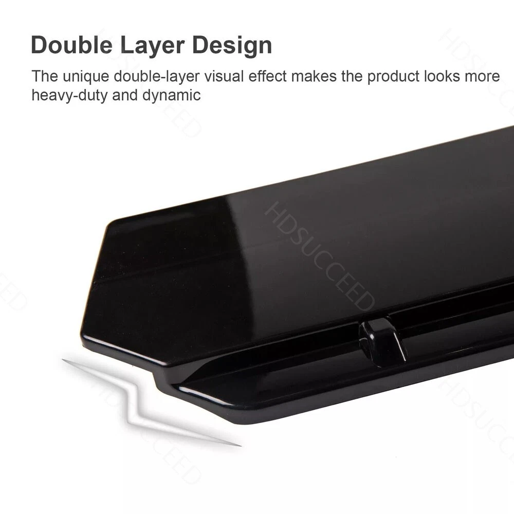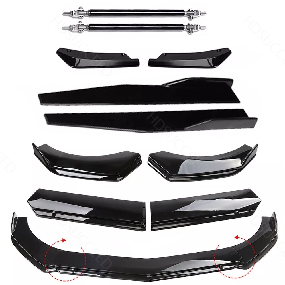 (You can contact us if you have any concerns). 1.Front Bumper Lip Specification: -Type:Front Lip Chin Bumper Body Kits -Material:High quality PP Polyurethane -Color:Glossy Black -Placement on Vehicle:Front;Lower -Fitment Type:Performance/Custom Feature: -Direct Fit. -Easy install and durable use. -Great quality and great Fitment. -Correct Connector No cutting or splicing. -Strict quality control standards to Build and test. -It'll give you a sporty look without making it too aggressive. -Light in weight and enduring, different optical line comes from different points of view. *Instruction Not Included, Professional Installation Is Highly Recommended.* Note:Please make sure the front bumper of your car is flat enough,and didn't install old front bumper lips. 2.Side Skirt: -Type:Side Skirt Extensions -Material: High quality PP Polyurethane -Color: Glossy Black -Length Size:29in(Make Sure 29in Length is the size you WANT!) Fitment: Universal Fit For most car Features: Universal modified side skirt for car sedan. While the side skirts don't affect the front ground clearance too much, it enhances the side extension of the in a very pure and exciting way. A Perfect Aftermarket Replacement. Professional Installation Is Highly Recommended. 3.Rear Lip Condition: 100% Brand New and High Quality Type: Car Body Rear Lip Material: Made of high quality PP plastic, Durable Color: Glossy Black Surface Finish: Glossy Black Style Rear Lip Size:17.32 in x 4.33 in Placement on Vehicle: Left, Right Features: UV-Protected Coating, 100% Weather Proof Universal fit for all cars, off-roads, SUVs, Trucks Give your car a very sporty looking in minutes by adding this Rear bumper canard It is durable and long lasting during any weather situation It can also protect your rear side bumper from scratches or small bump damages. 4.Strut Rods Length: The length can be adjustable from 7.87" to 13" (200-330mm) Material: Stainless Steel Quatity: 2 x Stainless Steel Bumper Lip Splitter Tie Rod Bars. ( Stainless steel has weldability, corrosion resistance and heat resistance.) Position: This exquisite and compact lever is mainly fixed on the body components (front and rear surround, skirt, head and tail lip), and can also be installed in the car center console or interior trim panel Require: Product will require drilling holes into the bumper and/or lip/diffuser to attach safely to the vehicle. Package Includes: 4 pcs /set Front Lip Chin Bumper Body Kits 2 x Side Skirts 2 x Rear Lip 2 X Strut Splitter Rods 1 x Screws kit