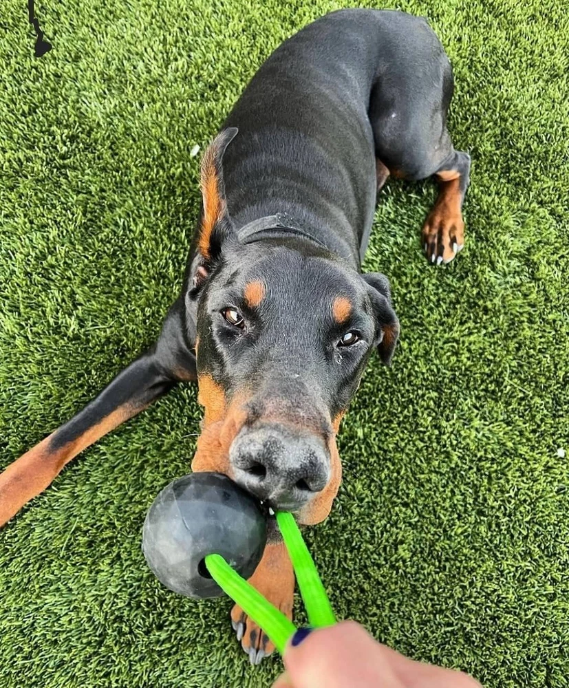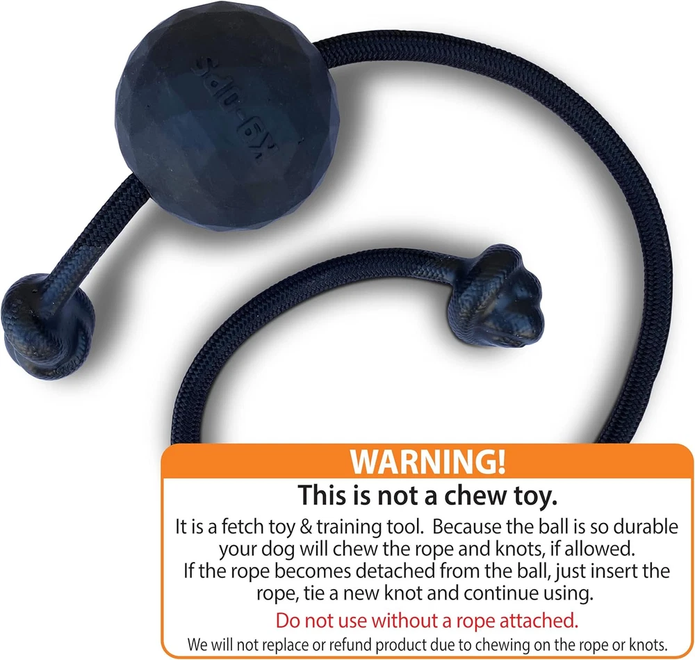 Super Strong and Extra Durable Ball - Solid, multi-layered, slow-cured natural rubber construction dog training ball. Designed to withstand aggressive chewers and large dogs. The Ball is so strong that if you leave this training tool with your dog to chew on they will only destroy the rope. Let them chew on chew toys not training tools. We DO NOT warranty the rope if you let your dog chew on it. EXTRA STRENGTH 16-INCH LONG PARACORD ROPE - We couldn't just use any rope. The 16" long Para-Max extra strength paracord features six 3-ply twisted cores, and the 5/16" thickness is made of a 32-strand interwoven sheath for a minimum 1,000 lb. tensile strength. It is a very durable rope, but it is still a rope. That being said your dog will destroy the rope if you let them. Don't be "that guy". BALL LAUNCHER COMPATIBLE - The Tennis ball-sized ball fits perfectly in popular dog ball launchers and the solid construction makes it extra bouncy for hours of fun training. LARGE DOG APPROVED - While many brands will claim they have indestructible dog toys, lets be honest, no dog ball is completely indestructible. We all know that King Kong of dogs & a 120lb Monster. But after a year of testing with K-9 Moki, an 80 pound Malinois, we found the sweet spot; soft enough to get a grip, but hard enough to hold up to most aggressive chewers. That being said, DO NOT let your dog chew on the rope. They will eventually destroy the rope because they can't destroy the ball. K-9 OPS USA - Our line of dog products is designed and tested to hold up to the rigorous daily activity of law enforcement K-9's. Check out our other products available and our website. This is not a chew toy. Developed and field tested by law enforcement K-9 handlers this "Moki" rope tug dog ball toy by K9 Ops is a solid, multi-layered, slow-cured natural rubber dog ball paired with 16" Para-Max extra strength paracord rope. It is a very high-quality rope, but because your dog wont be able to destroy the ball they will chew the rope if you let them. And I am sure we can all agree that no rope is indestructible. We do not honor replacements if you allow your dog to chew the rope or knot ends. Don't be "that guy", you're better than that. The signature hex-shaped design ball and raised logo placement helps enhance the grip for throwing. It has high impact bounce for hours of play and is compatible with popular dog ball launcher. Tennis ball sized, perfect for medium to large-sized dogs. While many brands will claim they have indestructible dog toys, let's be honest, no dog ball is completely indestructible. We all know that King Kong of dogs. But after a year of field testing with K-9 Moki, an 80-pound Malinois, we found the sweet spot; soft enough to get a grip, but hard enough to hold up to most aggressive chewers. German Shepherd, Doberman Pincher, Rottweiler, Boxer, Pittbull, Bulldog and more aggressive chewers. Durable solid rubber fetch ball, nearly indestructible and unbreakable. Designed for training the most aggressive dogs