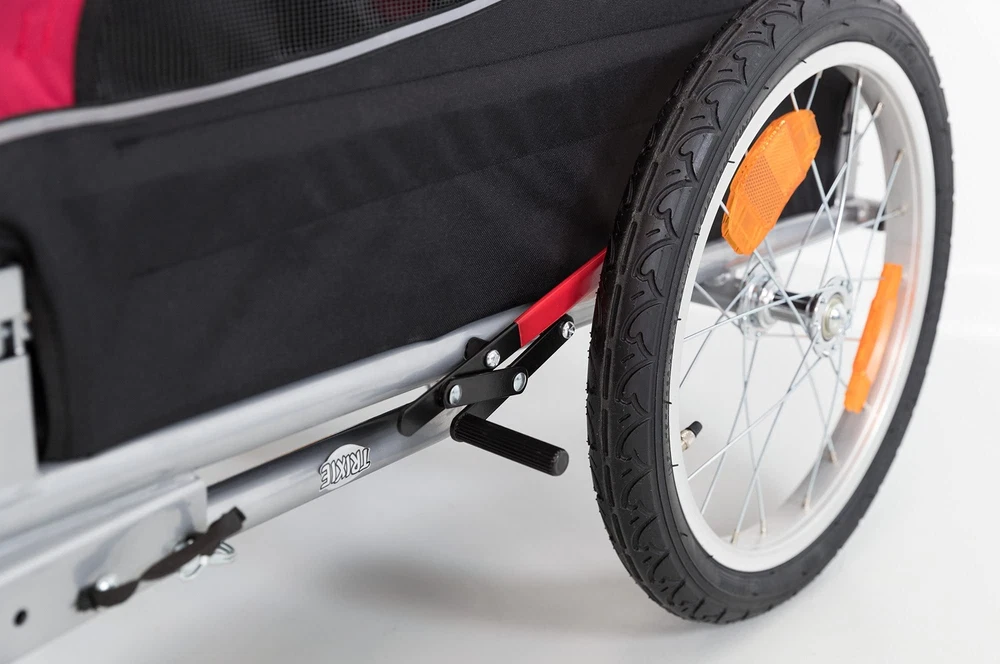Product Description Convert the Dog Bike Trailer into a versatile, all-terrain jogger/stroller with the Stroller Conversion Kit 12817. If you switch between cycling, walking, and jogging, then the Bike Trailer is right for you. You can park your bike and hit the trails on foot, and your buddy will enjoy the same comfortable ride in his familiar trailer/stroller. Convert the Dog Bike Trailer into a stroller with our easy-to-install Stroller Conversion Kit – includes a handlebar, front swiveling wheel and mounting arm, parking brake, and all required hardware. Each order comes with 1 x Conversion Kit for Jogging Buggy Set Contains: Each order comes with 1 x Conversion Kit for Jogging Buggy Conversion from a bicycle trailer to a jogging buggy Front wheel with 360 degree joint Parking brake Ideal comfort while travelling, also on uneven terrain Non-slip handle, Size: Large.Note: The article mentioned is a conversion kit for a bicycle trailer. This means that this product is just an extension of Bicycle Trailer(which is a different product altogether).The rear wheels are part of the bicycle trailer and are therefore not included in the conversion kit.