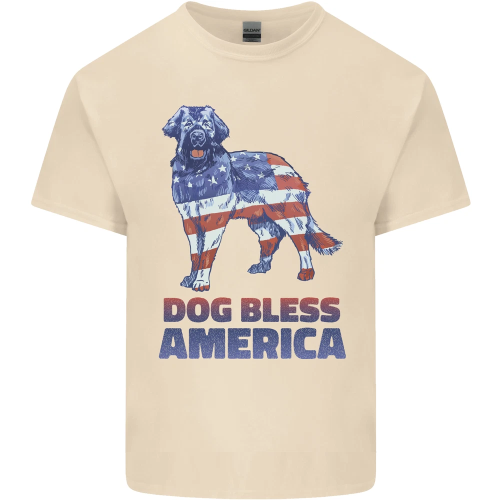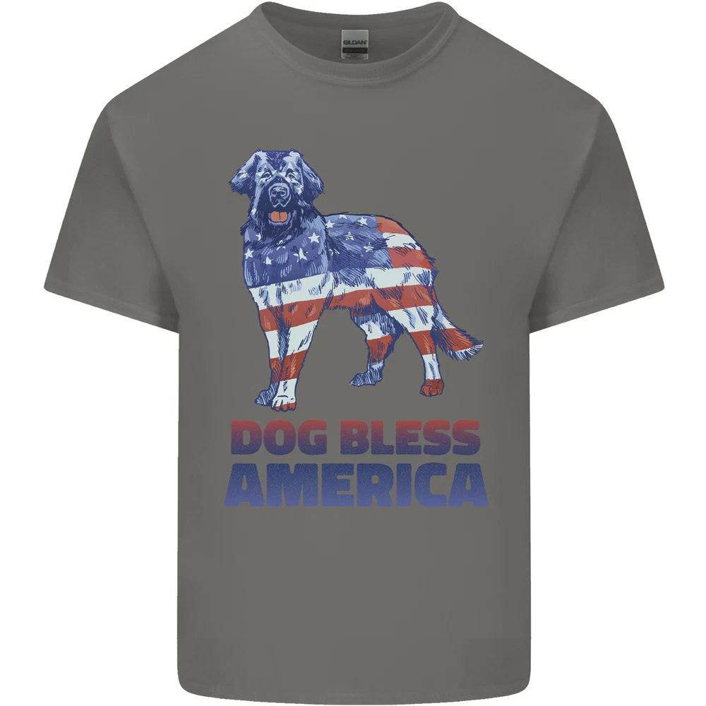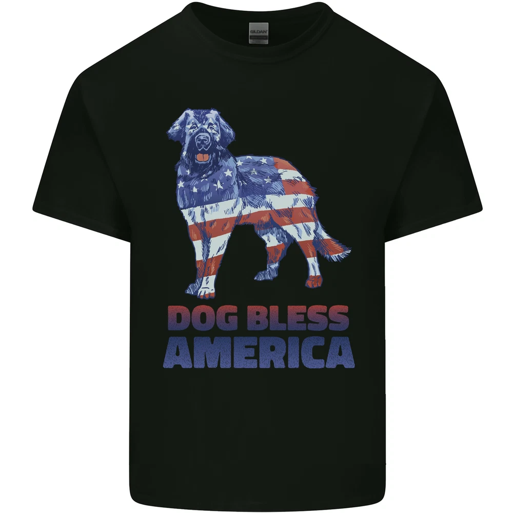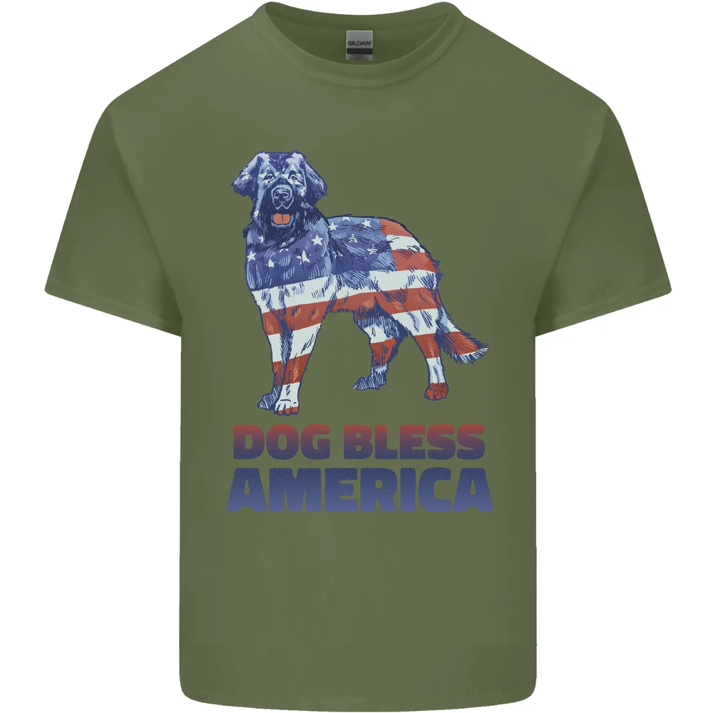 Dog Bless America USA Mens Cotton T-Shirt Tee Top