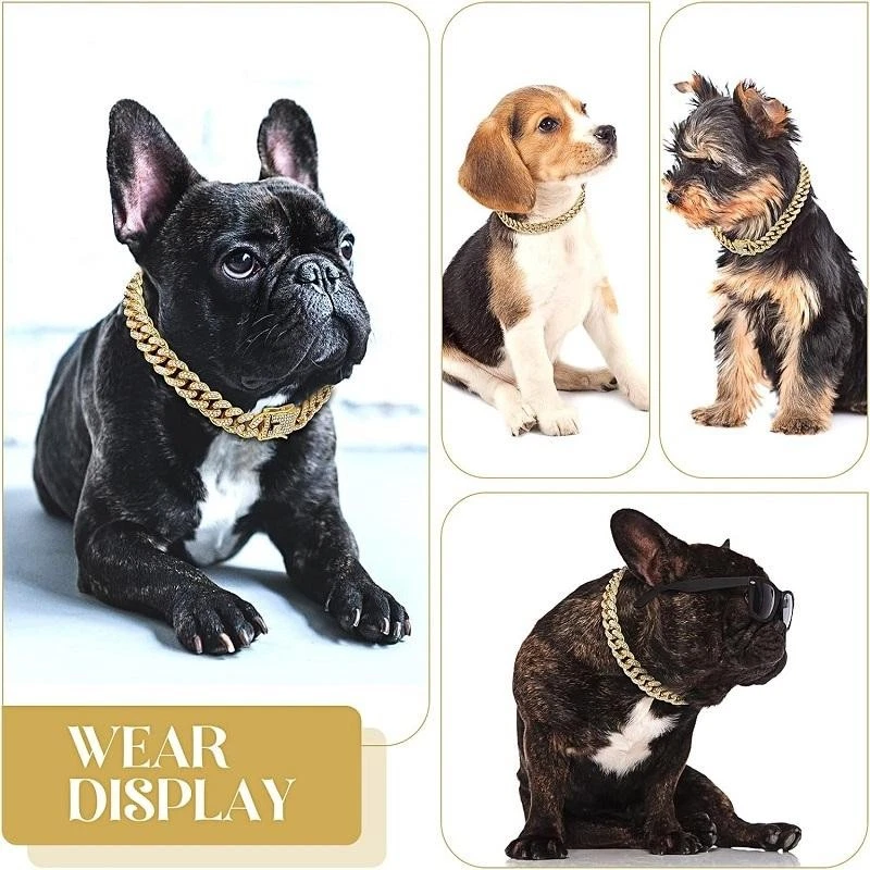 Dog Chain Collar Luxury Gold Pet Metal Chain Collar for Small Medium Large Dogs Production information: Material: copper alloy, with zirconia diamond Color:Gold/Silver/Rosegold Wide:12.5mm Length: 20cm(50g),25cm(55g),30cm(60g), 35cm(70g), 40cm(80g),45cm(85g), 50cm(90g), 55cm(100g), 60cm(110g), 65cm(120g), 70cm(130g) (Due to measurement error, the weight is for reference only, the specific weight is based on the real thing.) Suitable:for Small,Medium,Large Dogs,Cats Package Included:1 * Dog chain collar Notes: 1. Please allow 0-2cm error due to manual measurement. Thanks for your understanding. 2. Monitors are not calibrated same, item color displayed in photos may be showing slightly different from real object. 3.We support large quantities of orders and provide customized services ,the more purchase the more preferential prices. Shipping Fast Shipping Worldwide Returns We accept returns 30 days from the package received. Payments All payments are accepted via PayPal.