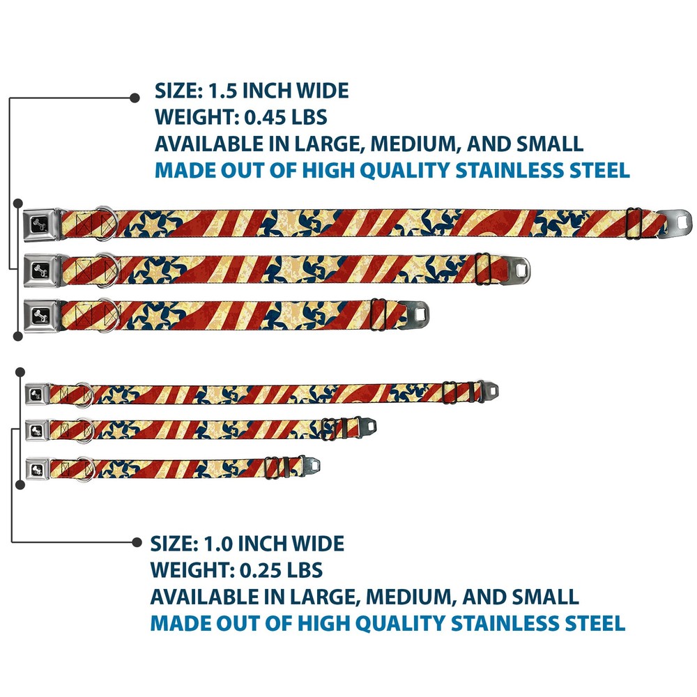 Brand: Buckle-Down Designs Pattern: Dog,Stars Type: Dog Collar Seatbelt Buckle Number of Items: ‎22196 Item Height: 25mm Color: Red Title: Dog Collar Bone Americana Diagonal Vintage Stars & Stripes2 Mediu Size: 1" Wide - Fits 11-16.5" Neck - Medium Dimensions: 17 x 1 x 1 inches; 3.36 ounces UPC: 0700146726245 Age Level: ‎All Life Stages Material: Nylon Item Weight: 95g Item Length: 431mm Item Width: 25mm MPN: W30140-1.0-M Dog Breed: ‎All Breed Sizes gtin13: 0700146726245 Closure: Buckle Release Date: 03/16/2017