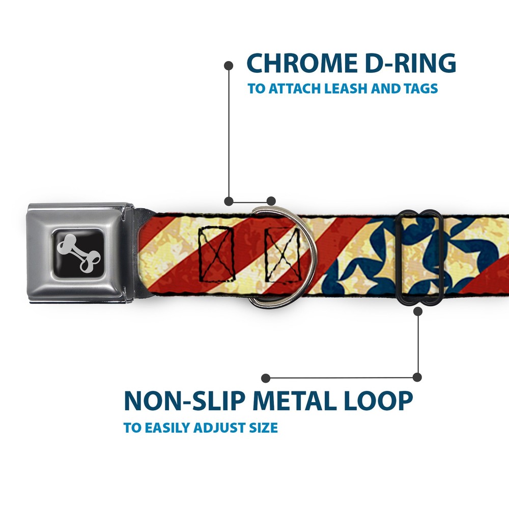 Dog Collar Bone Americana Diagonal Vintage Stars & Stripes2 Medium 11-16.5"