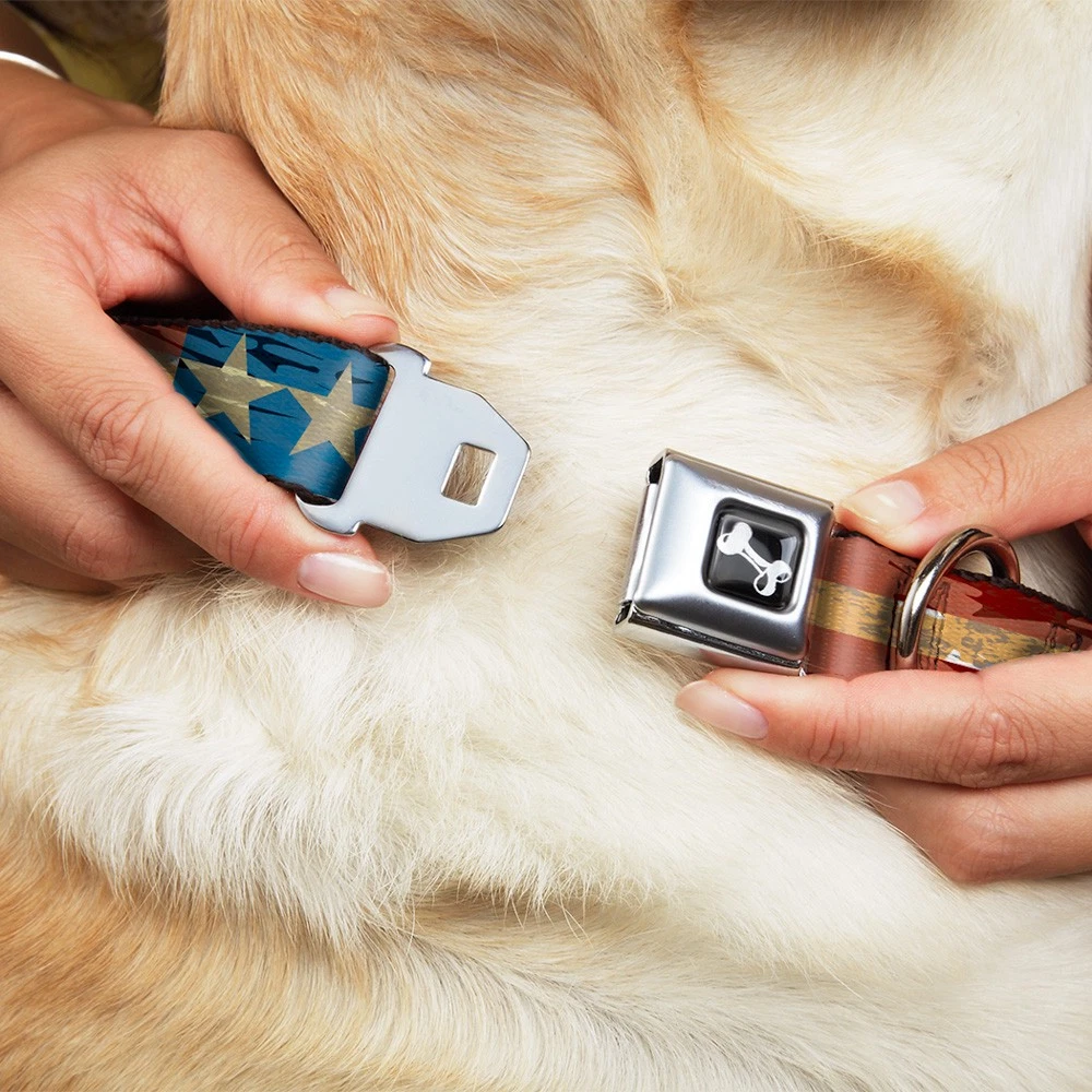Further Details Title: Dog Collar Bone Americana Vintage Stars & Stripes Medium 11-16.5" Condition: New Release Date: 09/30/2017 Item Weight: 181g Item Height: 25mm Age Level: All Life Stages Brand: Buckle-Down Designs MPN: W30137-1.0-M Item Length: 431mm Size: 1" Wide - Fits 11-16.5" Neck - Medium Number of Items: 22178 Type: Dog Collar Seatbelt Buckle Material: Polyester Pattern: Dog,Stars Dimensions: 17 x 1 x 1 inches; 6.4 ounces Item Width: 25mm Color: Beige Description: Your dog will be the talk of the town when people notice they're wearing this awesome SeatBelt Dog Collar! Made from high-density polyester and durable steel components, this collar is built to last. It features beautiful vibrant artwork. The buckle is a miniature authentic SeatBelt Buckle, so you press the center button to release the clasp. This product is assembled in the USA by Buckle-Down Inc. and officially licensed by Buckle-Down. Closure: Buckle Dog Breed: All Breed Sizes Fits 11-16.5" neck size and is 1" wide. The buckle is a miniature authentic SeatBelt Buckle, so you press the center button to release the clasp. Made from high-density polyester and durable steel components, this collar is built to last and features beautiful vibrant artwork. This patented product (D609,408) is assembled in the USA by Buckle-Down and is officially licensed by Buckle-Down. Matching leads/leashes available. Missing Information? Please contact us if any details are missing and where possible we will add the information to our listing.