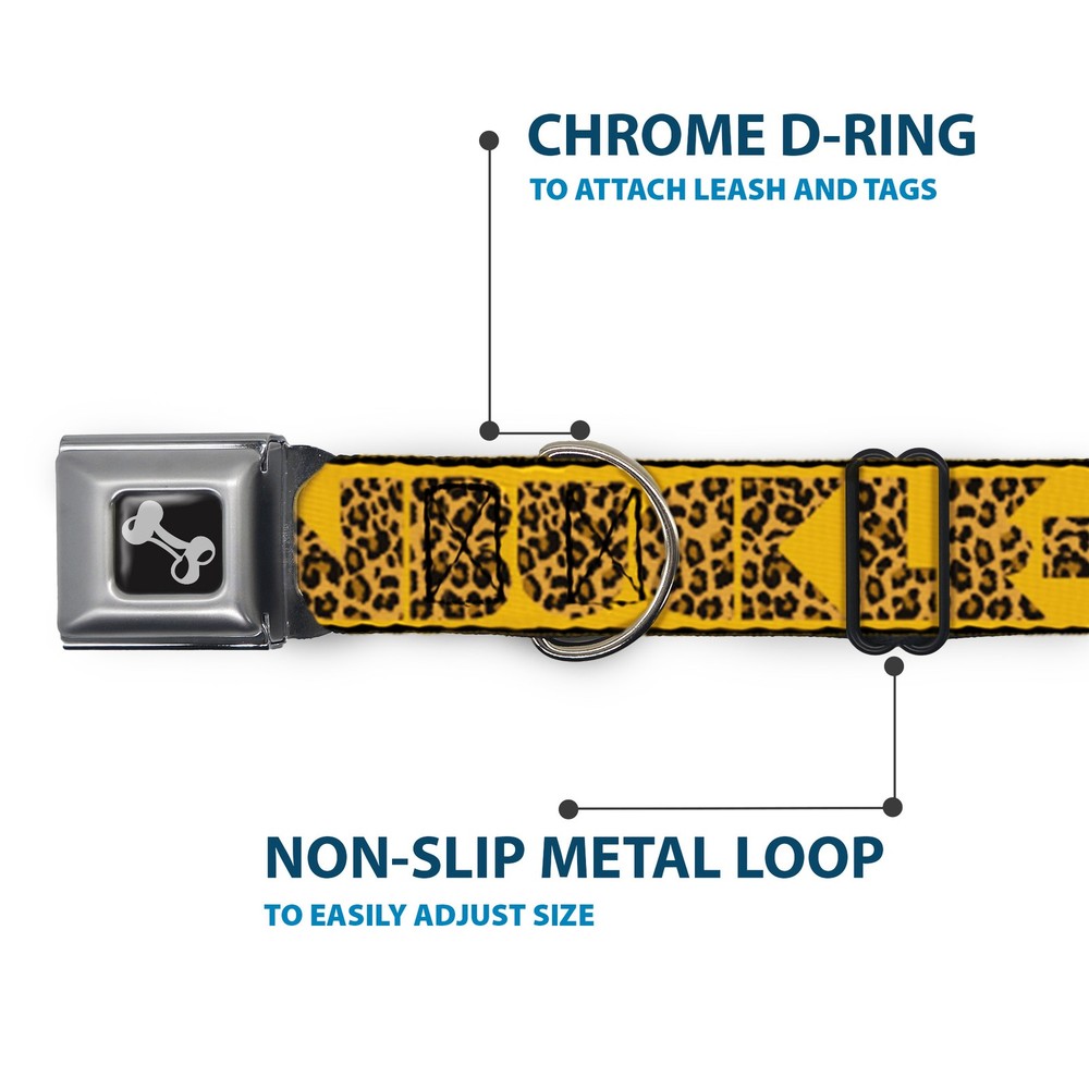 Further Details Title: Dog Collar Bone BUCKLE-DOWN Shapes Gold/Leopard Brown WIDE-Medium 16-23" Condition: New Release Date: 09/02/2017 Item Weight: 190g Item Height: 25mm Age Level: All Life Stages Brand: Buckle-Down Designs MPN: W32872-1.5-M Item Length: 584mm Size: 1.5" Wide - Fits 16-23" Neck - Medium Number of Items: 31308 Type: Dog Collar Seatbelt Buckle Material: Polyester Pattern: Leopard,Dog Dimensions: 23 x 1.5 x 1 inches; 6.72 ounces Item Width: 38mm Color: Yellow Description: Your dog will be the talk of the town when people notice they're wearing this awesome SeatBelt Dog Collar! Made from high-density polyester and durable steel components, this collar is built to last. It features beautiful vibrant artwork. The buckle is a miniature authentic SeatBelt Buckle, so you press the center button to release the clasp. This product is assembled in the USA by Buckle-Down Inc. and officially licensed by Buckle-Down. Closure: Buckle Dog Breed: All Breed Sizes Fits 16-23" neck size and is 1.5" wide. The buckle is a miniature authentic SeatBelt Buckle, so you press the center button to release the clasp. Made from high-density polyester and durable steel components, this collar is built to last and features beautiful vibrant artwork. This patented product (D609,408) is assembled in the USA by Buckle-Down and is officially licensed by Buckle-Down. Matching leads/leashes available. Missing Information? Please contact us if any details are missing and where possible we will add the information to our listing.