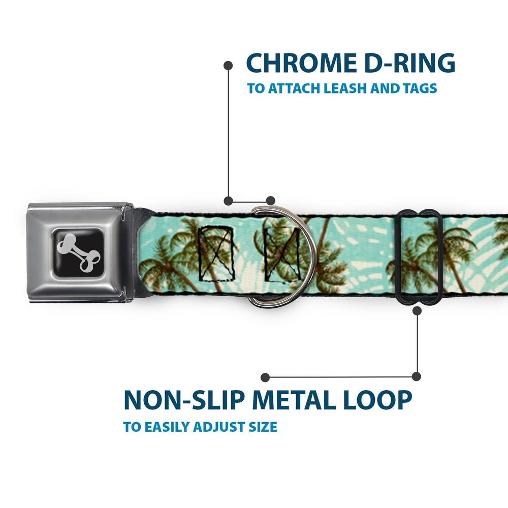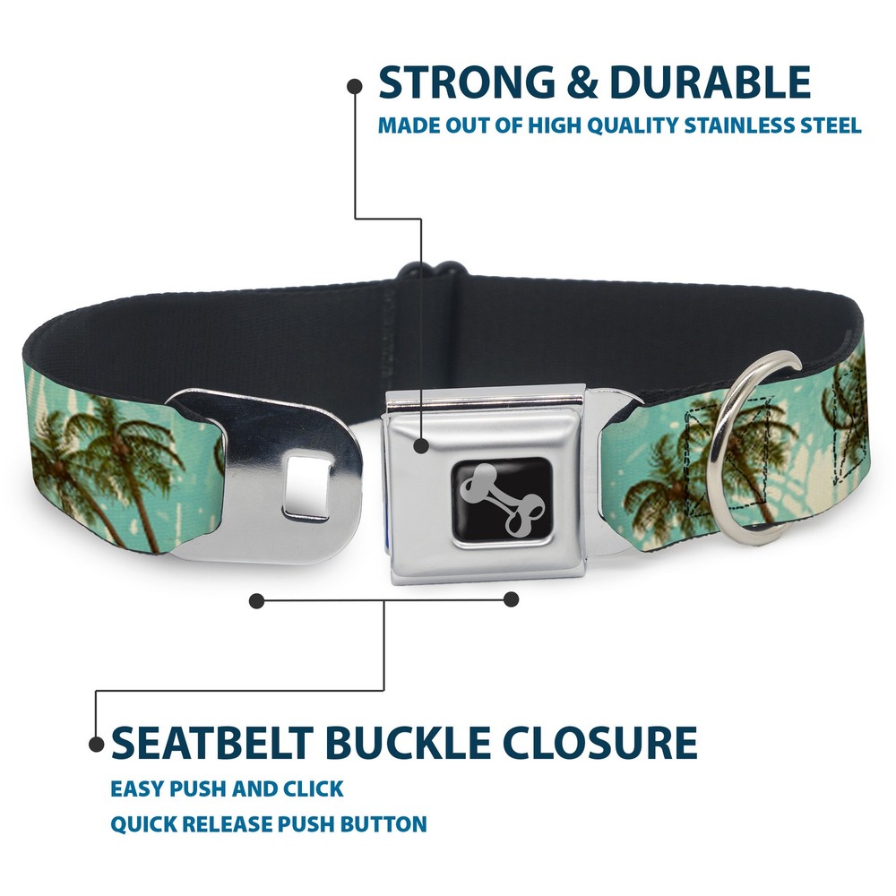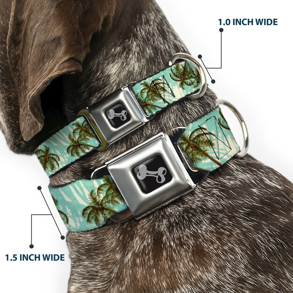 Further Details Title: Dog Collar Bone Palm Trees Swaying Tan/Teal WIDE-Medium 16-23" Condition: New Release Date: 03/16/2017 Item Weight: 190g Item Height: 25mm Age Level: All Life Stages Brand: Buckle-Down Designs MPN: W34243-1.5-M Item Length: 584mm Size: 1.5" Wide - Fits 16-23" Neck - Medium Number of Items: 33174 Type: Dog Collar Seatbelt Buckle Material: Alloy Steel, Polyester Pattern: Dog Dimensions: 23 x 1.5 x 1 inches; 6.72 ounces Item Width: 38mm Color: Green Description: Your dog will be the talk of the town when people notice they're wearing this awesome SeatBelt Dog Collar! Made from high-density polyester and durable steel components, this collar is built to last. It features beautiful vibrant artwork. The buckle is a miniature authentic SeatBelt Buckle, so you press the center button to release the clasp. This product is assembled in the USA by Buckle-Down Inc. and officially licensed by Buckle-Down. Closure: Buckle Dog Breed: All Breed Sizes Fits 16-23" neck size and is 1.5" wide. The buckle is a miniature authentic SeatBelt Buckle, so you press the center button to release the clasp. Made from high-density polyester and durable steel components, this collar is built to last and features beautiful vibrant artwork. This patented product (D609,408) is assembled in the USA by Buckle-Down and is officially licensed by Buckle-Down. Matching leads/leashes available. Missing Information? Please contact us if any details are missing and where possible we will add the information to our listing.