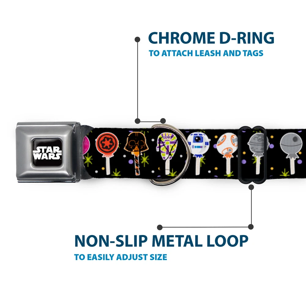 Further Details Title: Dog Collar SWBJY-STAR WARS Logo Full Color Black/White Star Wars Festive Lollipop Icons Black/Multi Color WIDE-Large 20-31" Condition: New Release Date: 05/14/2021 Item Weight: 190g Item Height: 25mm Age Level: All Life Stages Brand: Star Wars MPN: WSW221-1.5-L Item Length: 787mm Size: 1.5" Wide - Fits 20-31" Neck - Large Number of Items: 44795 Type: Dog Collar Seatbelt Buckle Material: Alloy Steel, Polyester Pattern: Dog Dimensions: 31 x 1.5 x 1 inches; 6.72 ounces Item Width: 38mm Color: Multicolor Description: Your dog will be the talk of the town when people notice they're wearing this awesome SeatBelt Dog Collar! Made from high-density polyester and durable steel components, this collar is built to last. It features beautiful vibrant artwork. The buckle is a miniature authentic SeatBelt Buckle, so you press the center button to release the clasp. This product is assembled in the USA by Buckle-Down Inc. and officially licensed by Star Wars. Closure: Buckle Dog Breed: All Breed Sizes Fits 20-31" neck size and is 1.5" wide. The buckle is a miniature authentic SeatBelt Buckle, so you press the center button to release the clasp. Made from high-density polyester and durable steel components, this collar is built to last and features beautiful vibrant artwork. This patented product (D609,408) is assembled in the USA by Buckle-Down and is officially licensed by Star Wars. Matching leads/leashes available. Missing Information? Please contact us if any details are missing and where possible we will add the information to our listing.